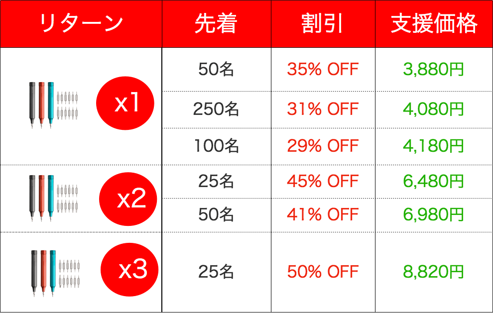 ※想定を上回る皆様からご支援を頂き、量産体制を更に充実させることができた場合、一般販売価格が予定価格を下回る可能性がございます。