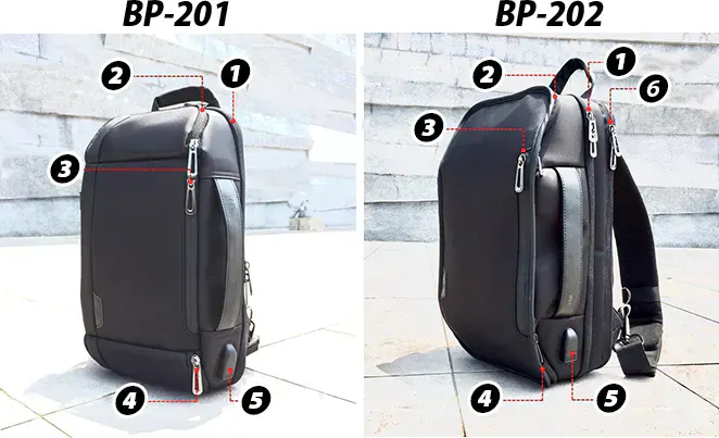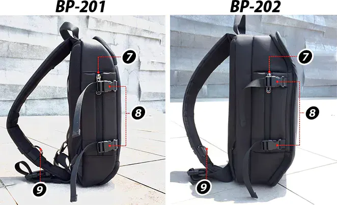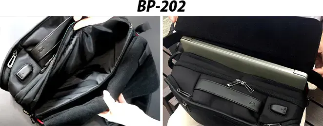 必要な機能に合わせて、2つのモデルを用意。2つのバッグは同じ機能デザインですが、BP-202には「ノートブックメザニン」があり、13~15インチのパソコンを収納できます。用途やライフスタイルに合わせてお好きなデザインをお選び下さい。