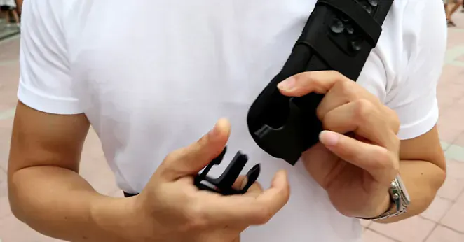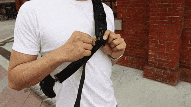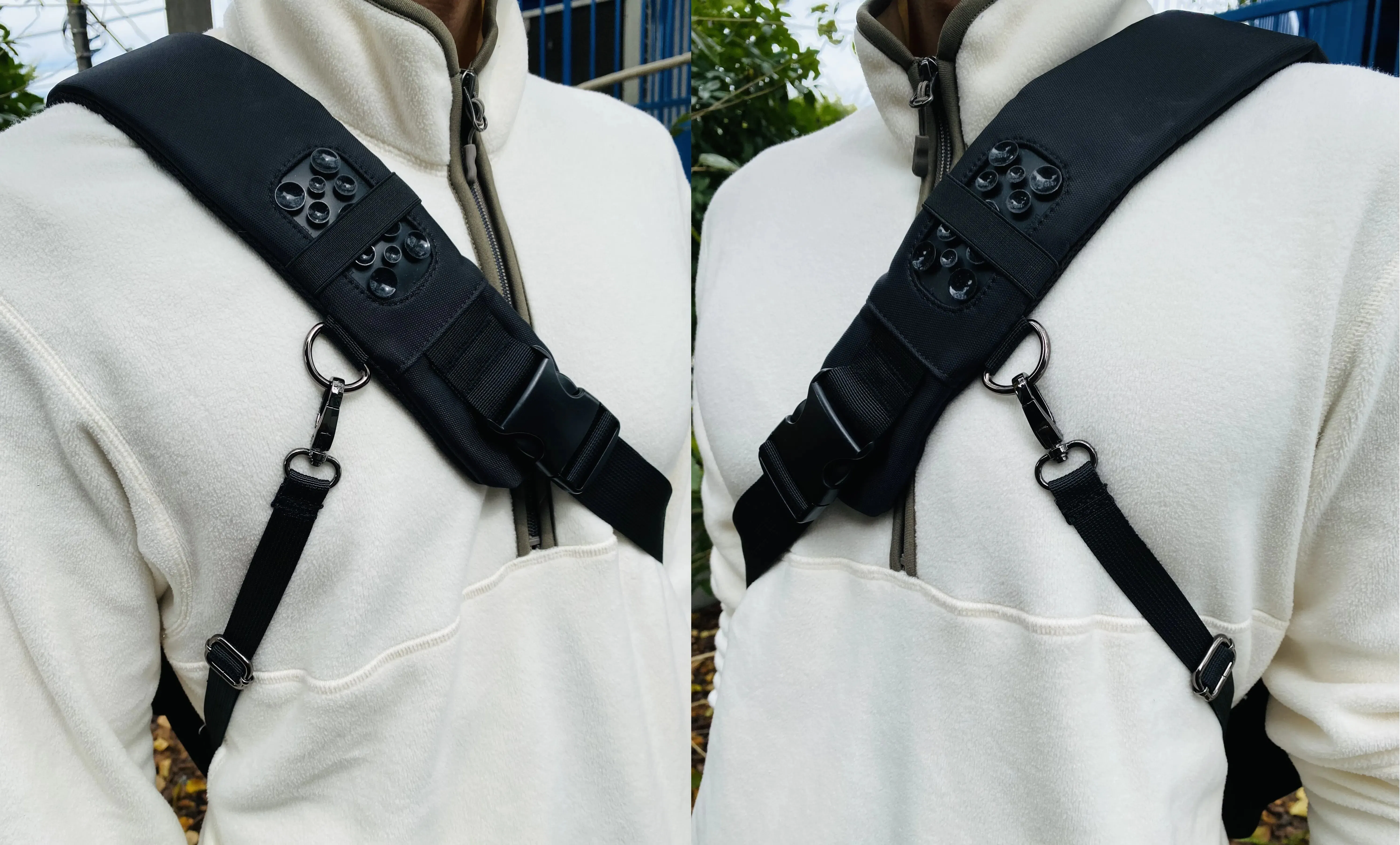 ※構造上の理由で左右のバックル位置、バランスが違いますがストラップで調節すれば安定します。