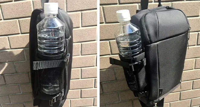 バックのサイドポケットには、700ccの水筒や折り畳み傘を収納できます。