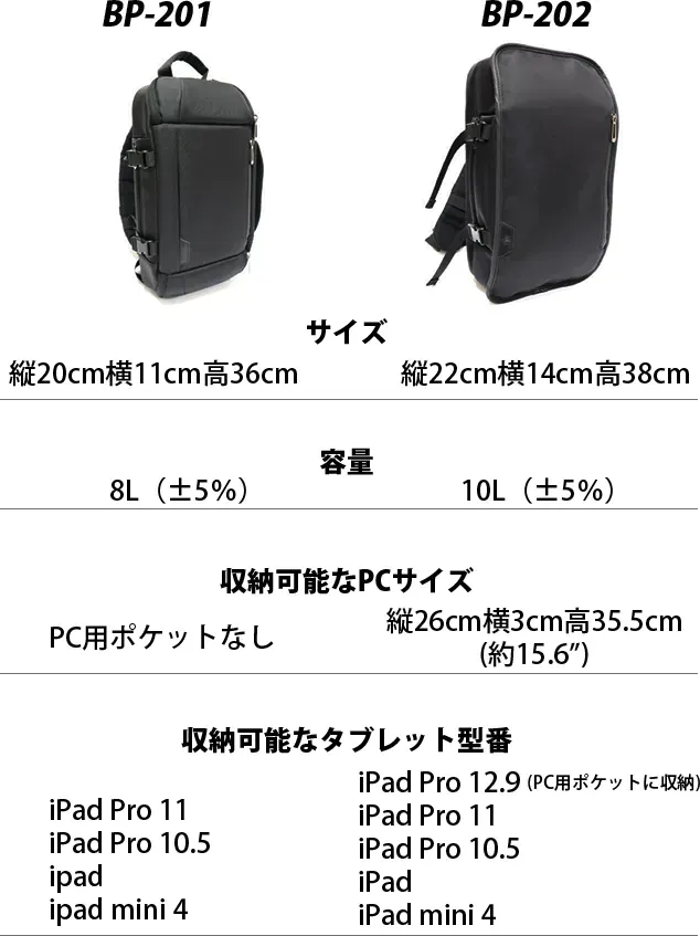 ※BP-201にはノートPCは収納できません。