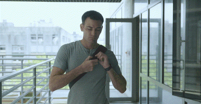 ストラップをバックルに掛けて固定する事で、自転車に乗ったり走ったりしてもバッグがズレません。