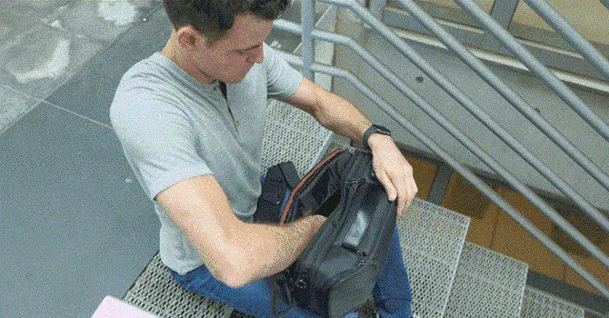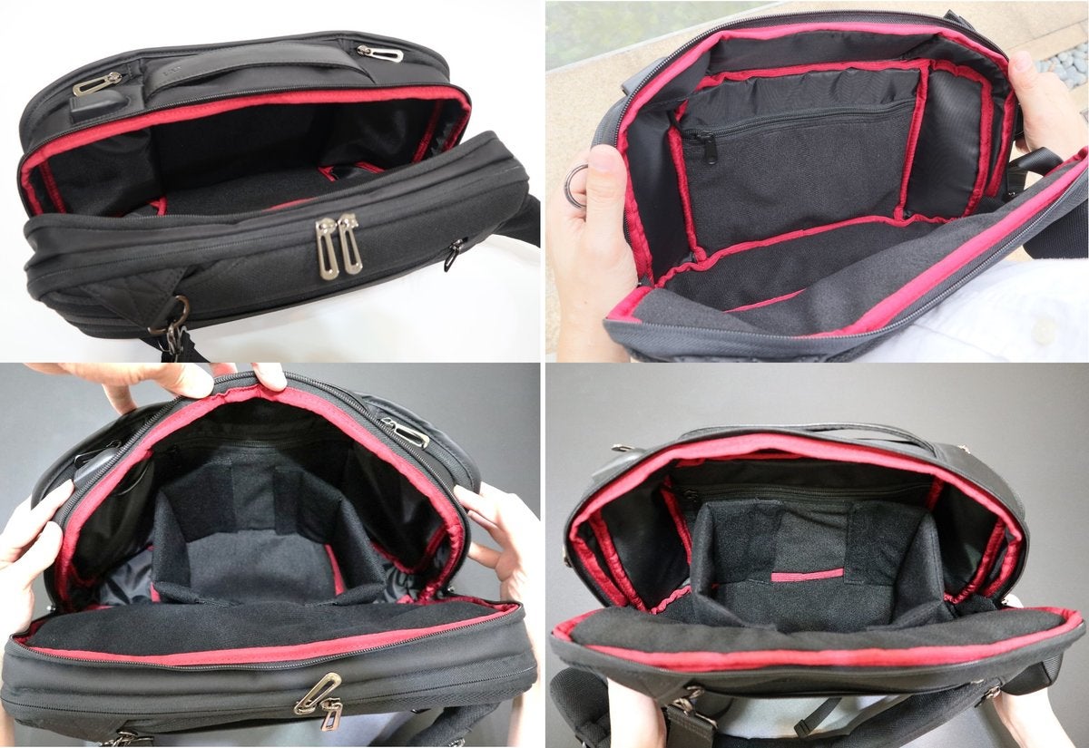 ▲ショルダーバックのボディを回転させて簡単にものを取り出せる(モデルはBP-202)