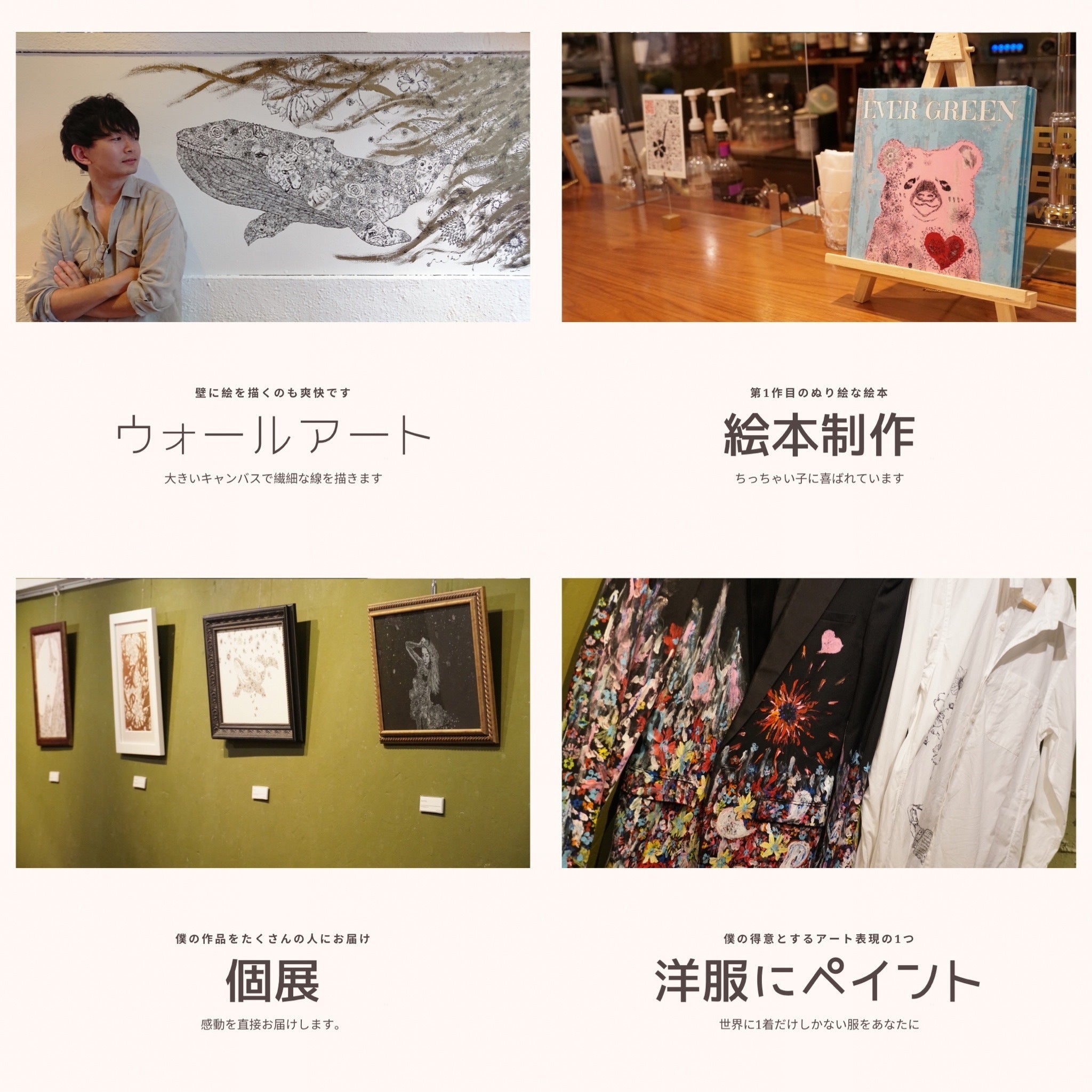 ペイントアーティストとして、個展や展示会、絵本制作をしながら活躍の幅を広げています。