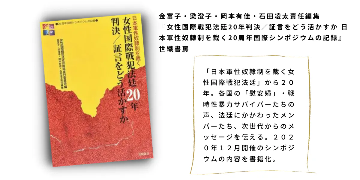 日本軍「慰安婦」問題について根拠に基づく確かな情報を発信し、日本軍がどのように未曾有の性暴力を引き起こして女性たちを苦しめたのかを伝えていくことは、現在の性暴力問題にとりくむための大きな力ともなると思います。ご支援をどうぞよろしくお願いいたします。