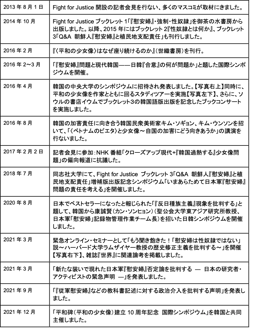 このようにFight for Justiceは、これまでにもメディアミックスにより、総合的に日本軍「慰安婦」問題に関する情報発信を積極的に展開してきたのです。以下は「まとめ」です。