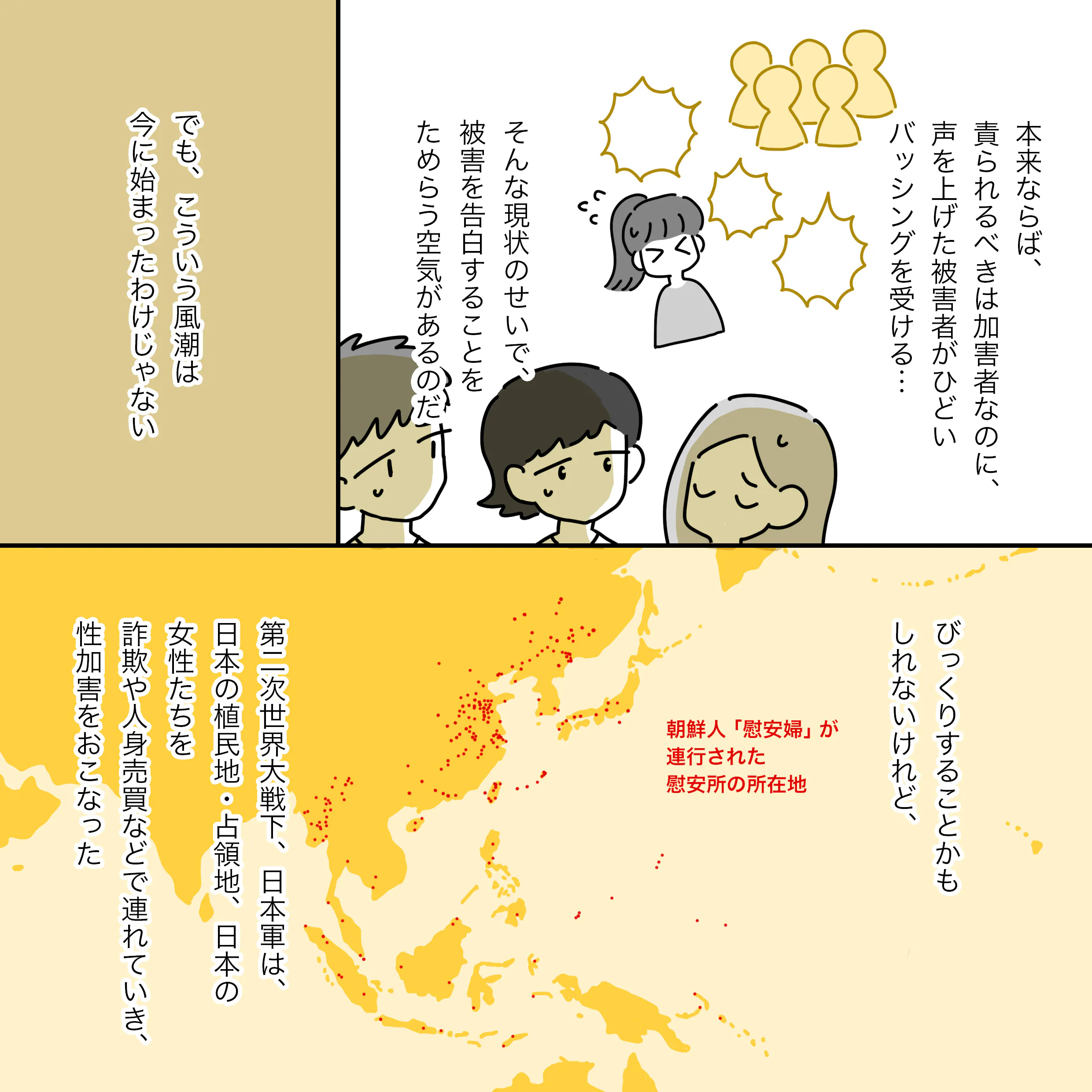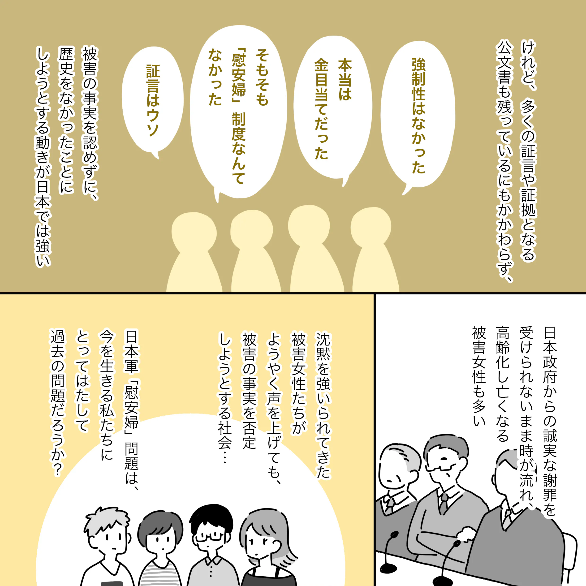 冒頭のマンガは、日本軍「慰安婦」問題が、現代の性暴力被害者バッシングを考える上でも重要であるということを伝えるためのものです。マルチメディアのコンテンツを、さらに充実させていきます。自己紹介の部分に載せたPRムービーは若手メンバーが作ったものです。