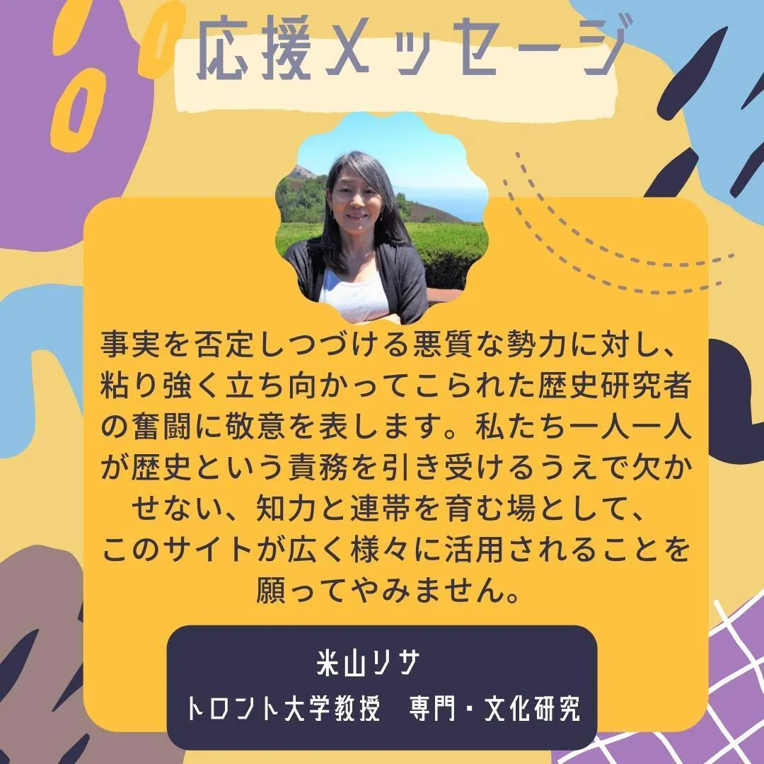 米山リサさん(トロント大学教授 専門・文化研究)から応援メッセージいただきました!