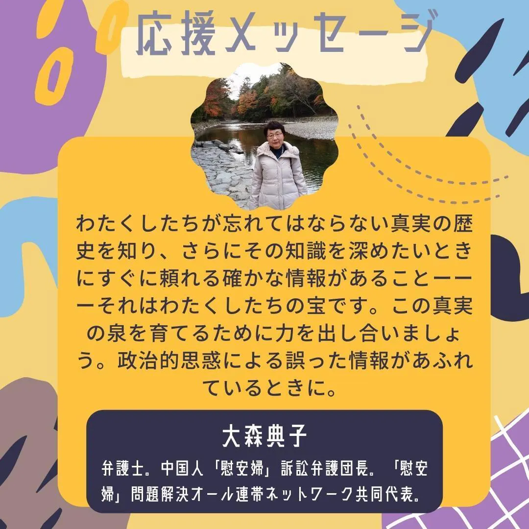 弁護士/中国人「慰安婦」訴訟弁護団長/「慰安婦」問題解決オール連帯ネットワーク共同代表の大森典子さんから応援メッセージいただきました!
