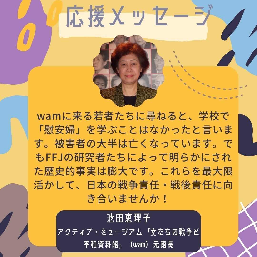 アクティブ・ミュージアム「女たちの戦争と平和資料館」(wam)元館長の池田恵理子さんから応援メッセージいただきました!