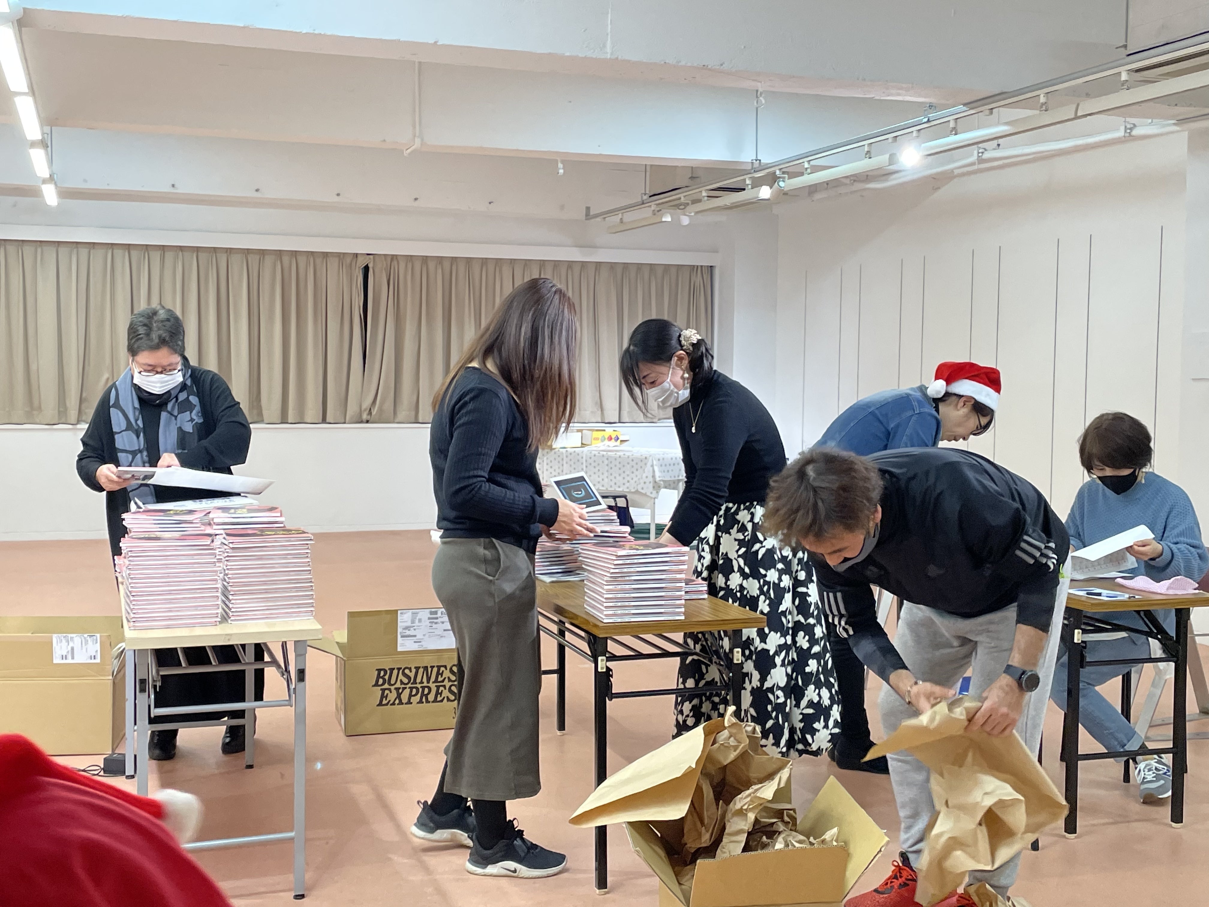 12月25日 クリスマスライブに集まった皆さんが梱包&発送作業を手伝ってくださいました!みんなですると、めちゃくちゃ早い!