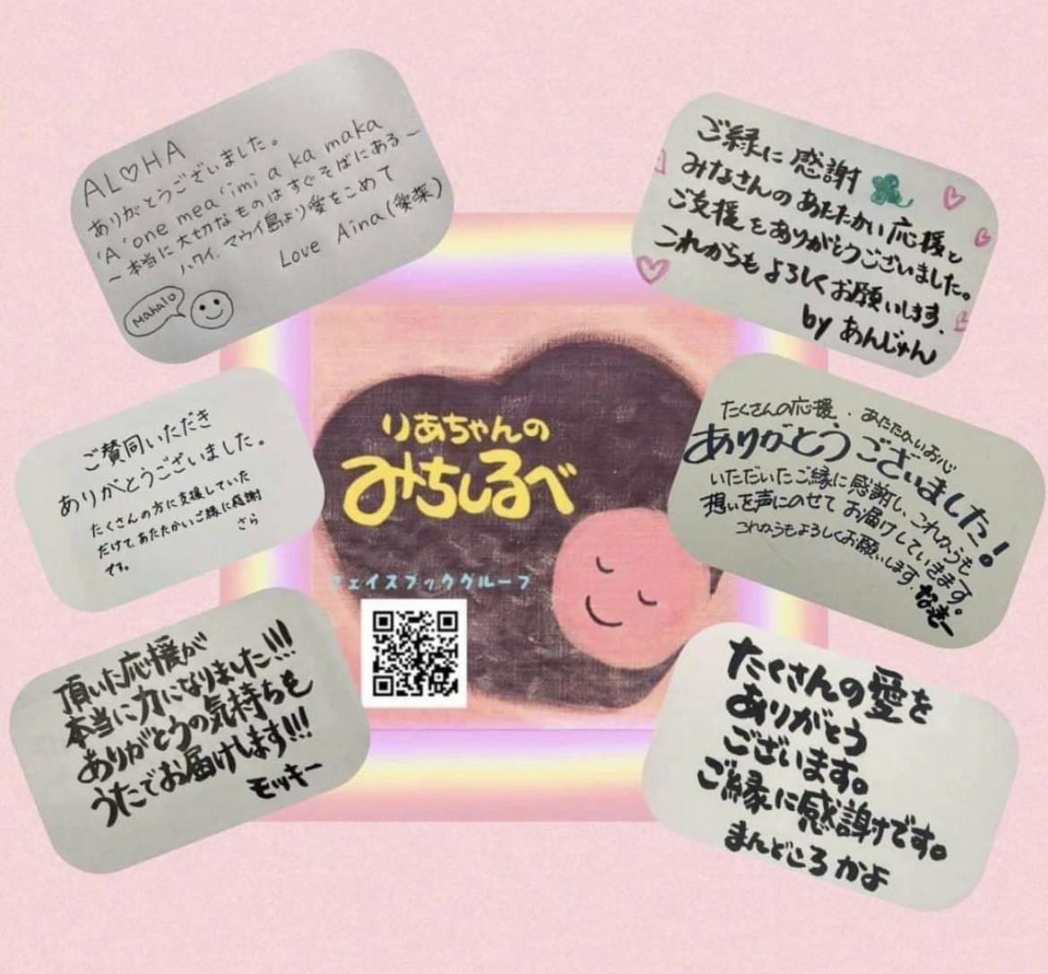 今年は、絵本「りあちゃんのみちしるべ」を応援、支援をいただき、ありがとうございました。
