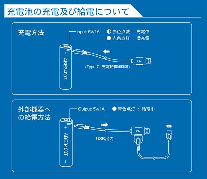 ■付属の専用ハイブリッドケーブルを使えば3400mAhの超小型大容量モバイルバッテリーとしても使用可能!