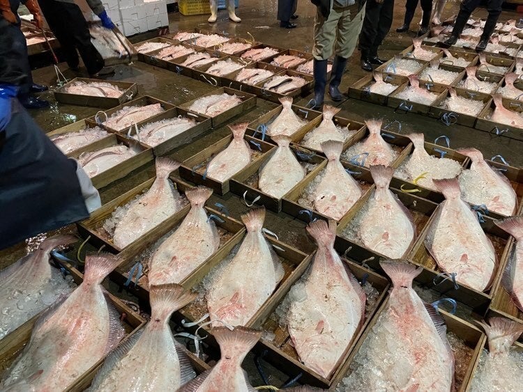 島根県浜田の競り様子(ヒラメやハタ)