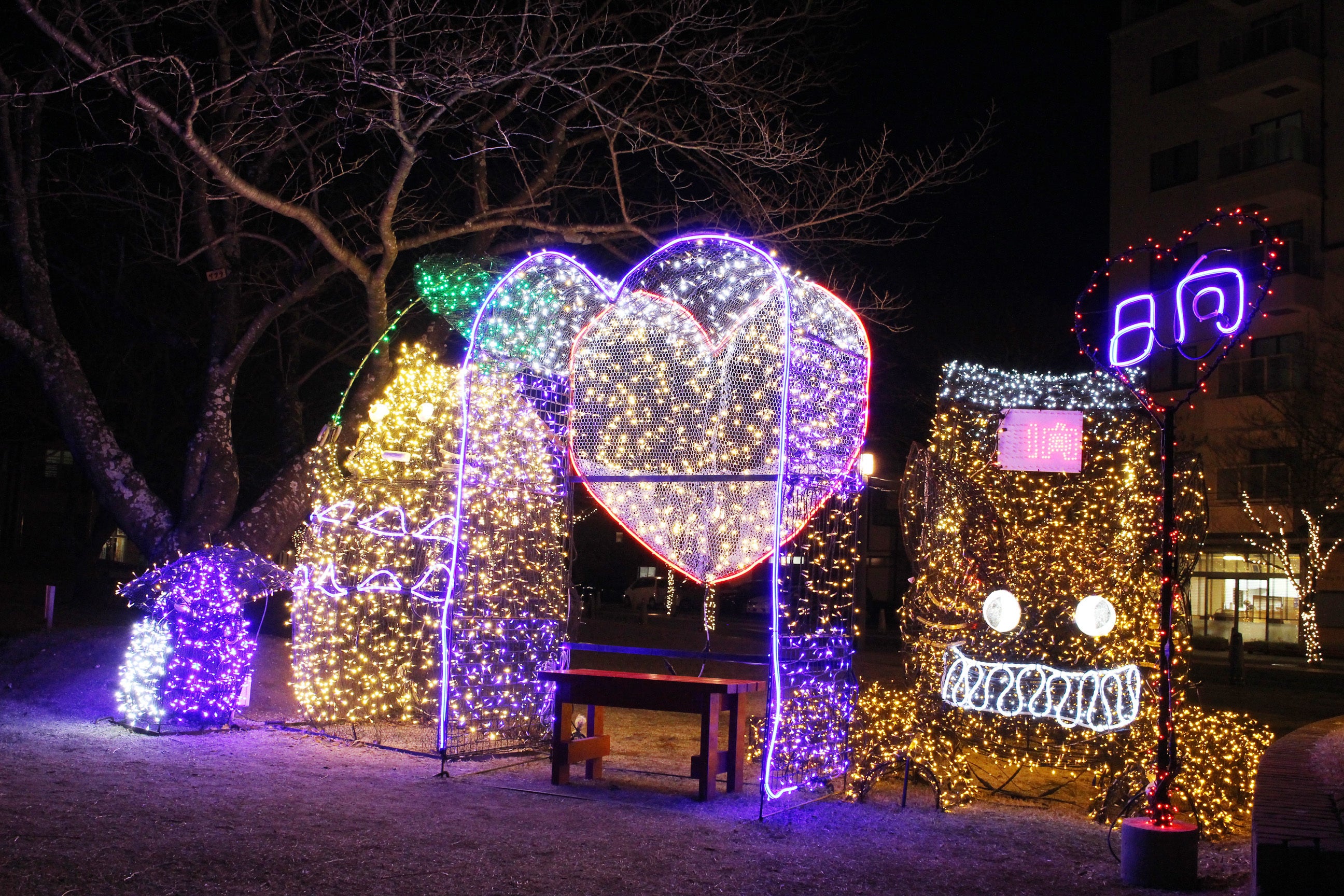 近年は地元の高校生たちにも参加してもらい、毎年このイルミネーションのために光のモニュメント制作を授業に取り入れていただいています。