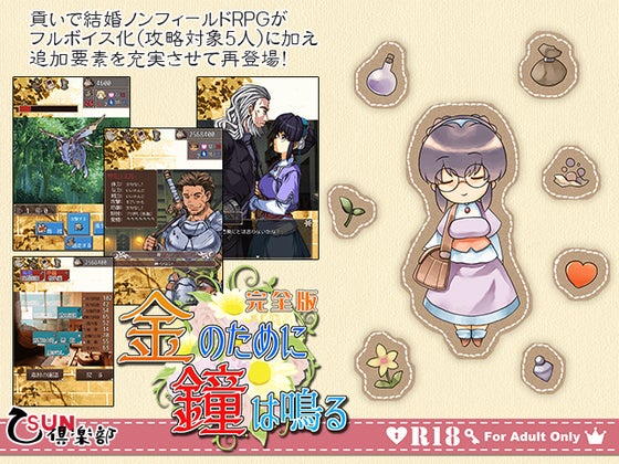 いよいよ、いよいよです。 いよいよ、「金のために鐘は鳴る 完全版」が完成いたしました! これも、支援してくださった皆様、ご協力下さったみなさまのおかげです。 本当にありがとうございました! 今日から明日にかけてリターンの本編とCG集をお配りします。 CG集はくれぐれもプレイ後にご覧ください。 当然ですが盛大なネタバレがあります。 本編については「まりあるばむ」と同じ機種でお配りしますので、ご了承ください。 ここまで、長いようで短く、短いようで長い道のりでした。 いろんなことがありました。 ですが、奇しくも最初に販売してから一年後という節目に彼らに声をつけてあげることができました。 本当にありがとうございました。 愛すべきおっさんたち、愛らしいマリア、文音、ひものより最大級の感謝を。
