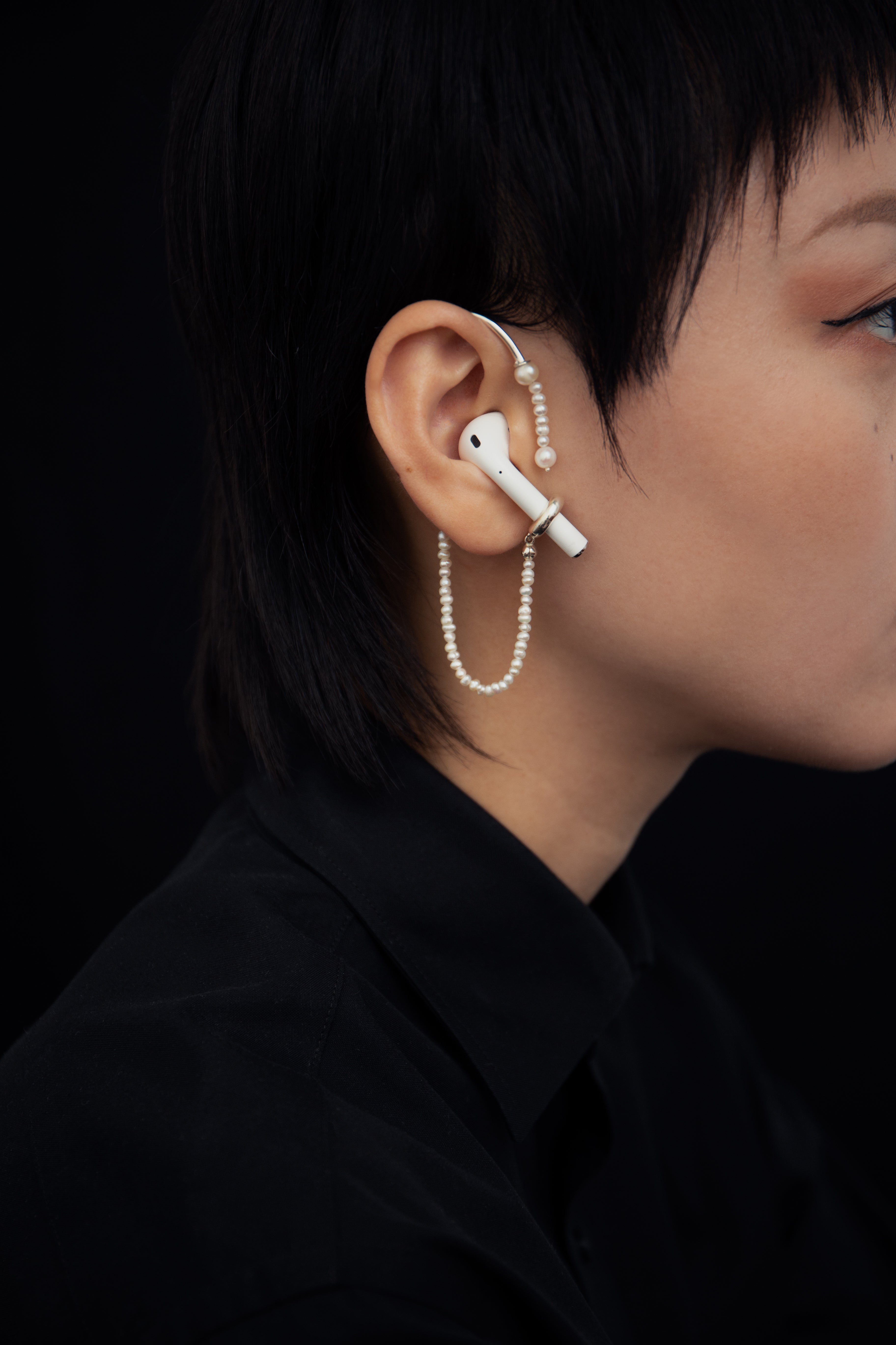 大小のパールが作り出す目新しいAir Pods対応ジュエリー。