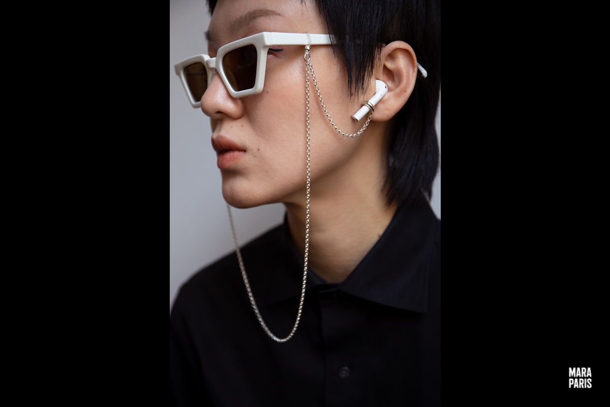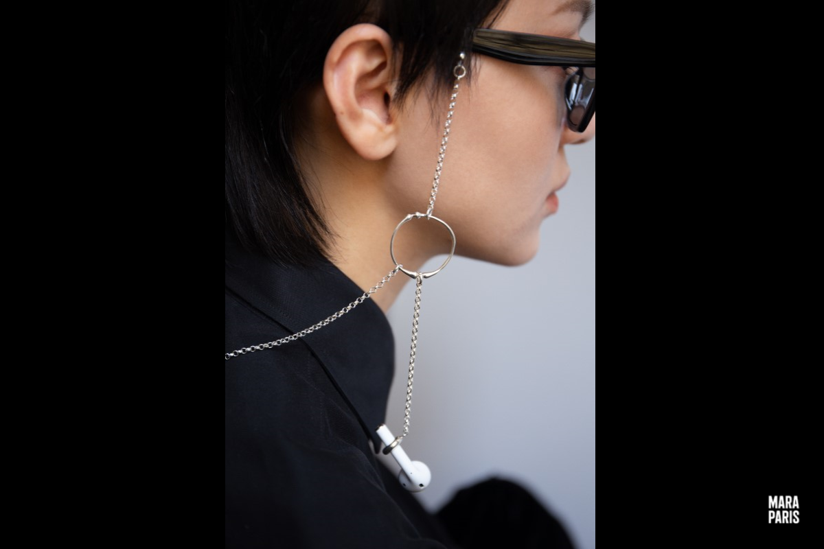 ガジェットと共にメガネの美しさにもフォーカスし、考えられたチェーンの太さ。また身に着けたときに全身の装いがより美しく見えるよう長さも工夫し、いかなるユーザーにもご利用いただけます。MARA PARISがリリースしてきた中でも比較的カジュアルで、普段使いに非常に便利です。
