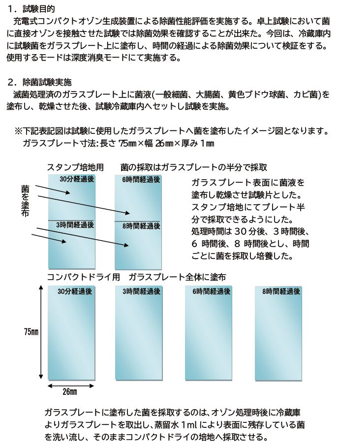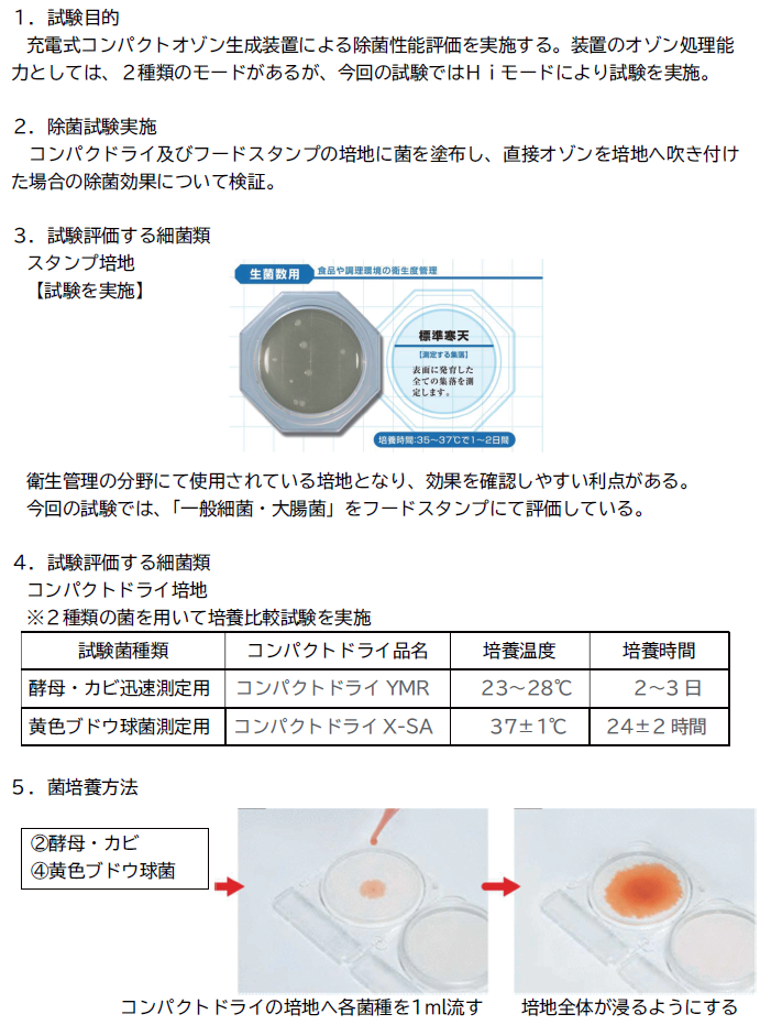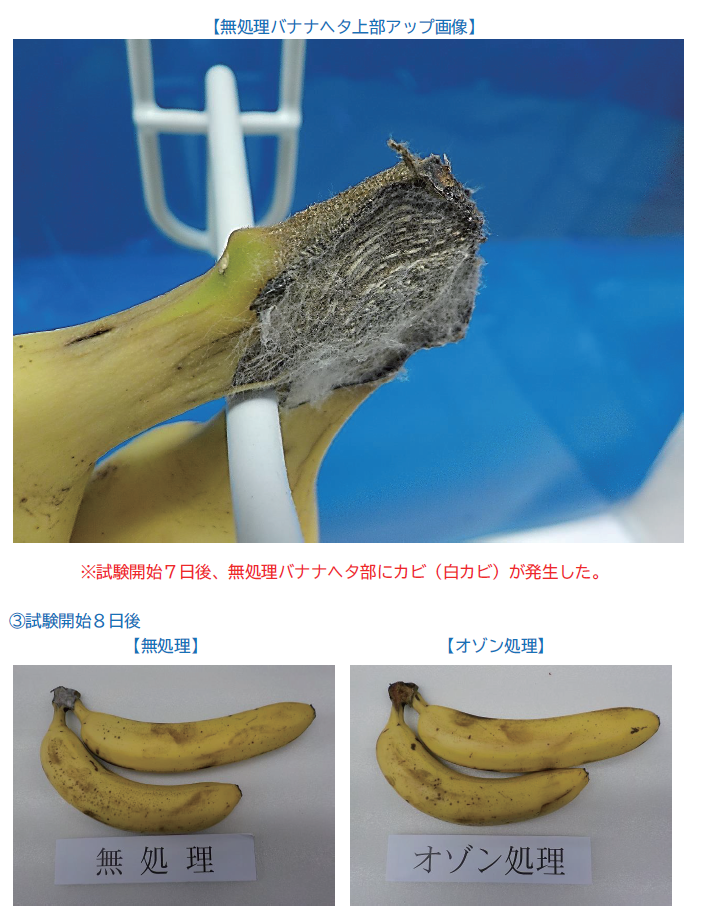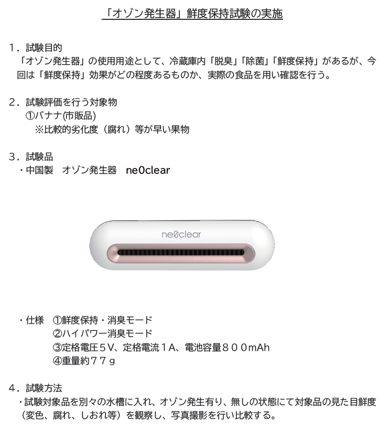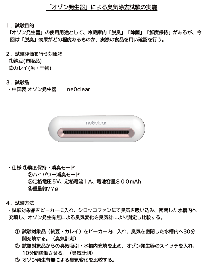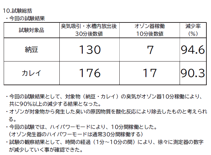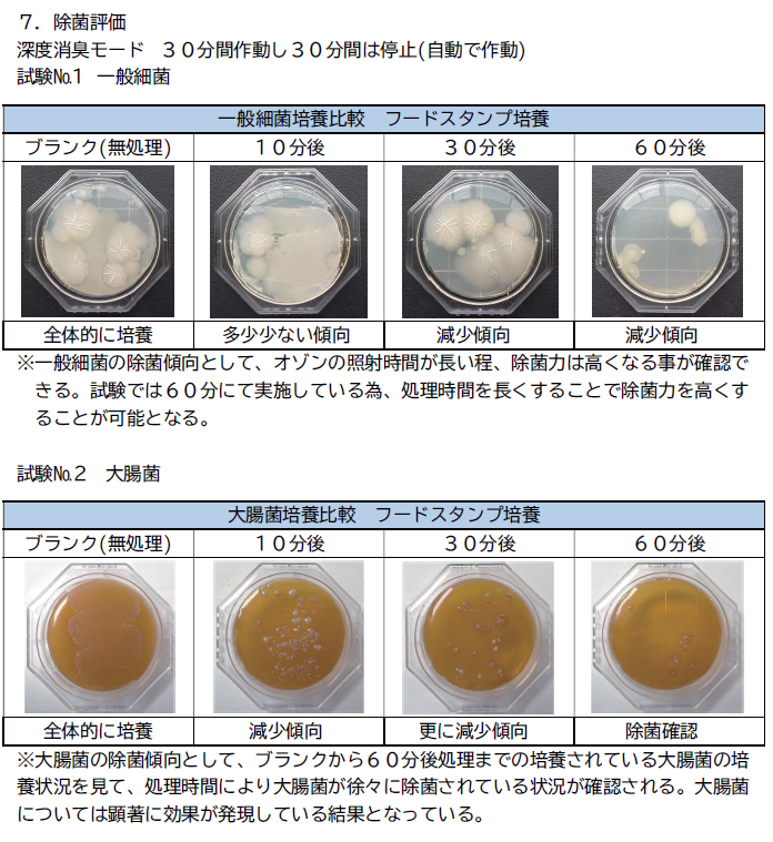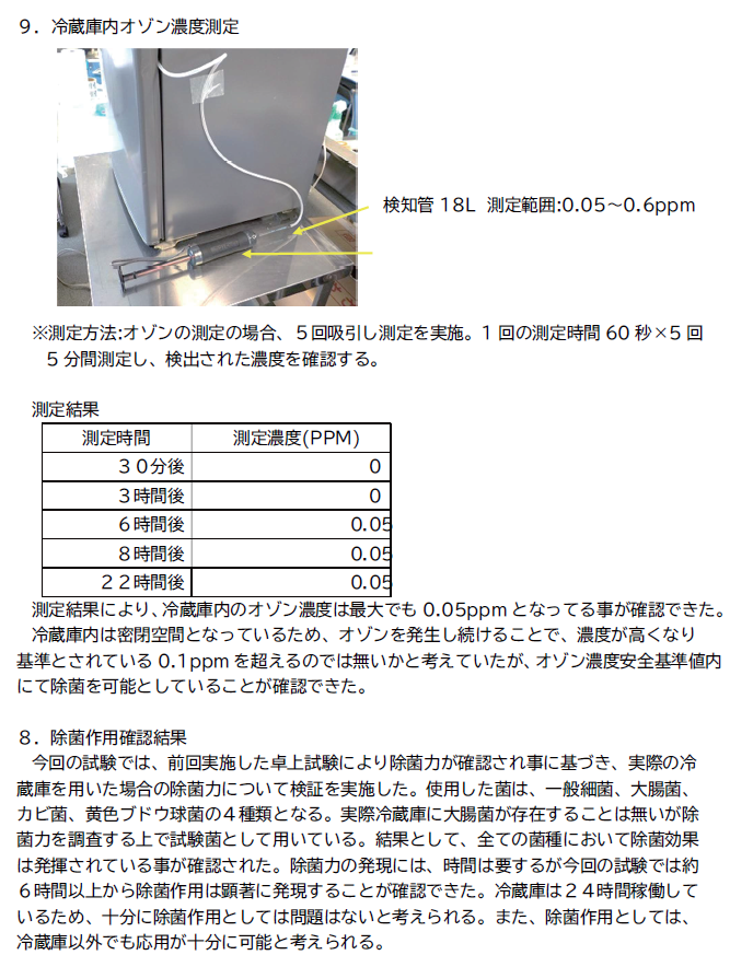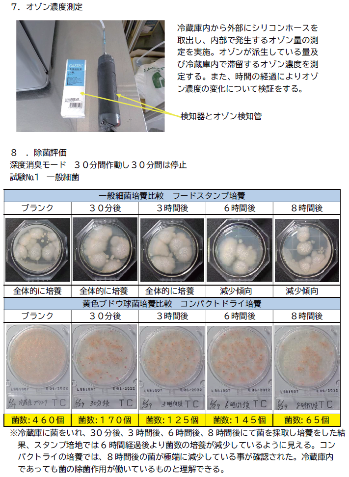 オゾンのメカニズムを利用してどれほどの効果があるのか、 消臭、除菌、鮮度保持の実証試験を行い、