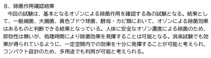 除菌・脱臭が行われた後は酸素だけが残るだけになるので、きわめて安全性が高いといわれています。