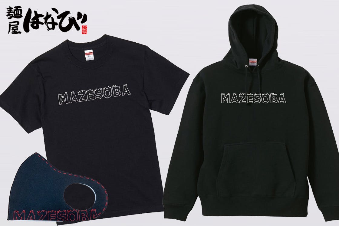 リターン内容に台湾まぜそばの元祖【麺屋はなび】よりオリジナルグッズ3点セット(パーカー、Tシャツ、マスク)を追加しました!