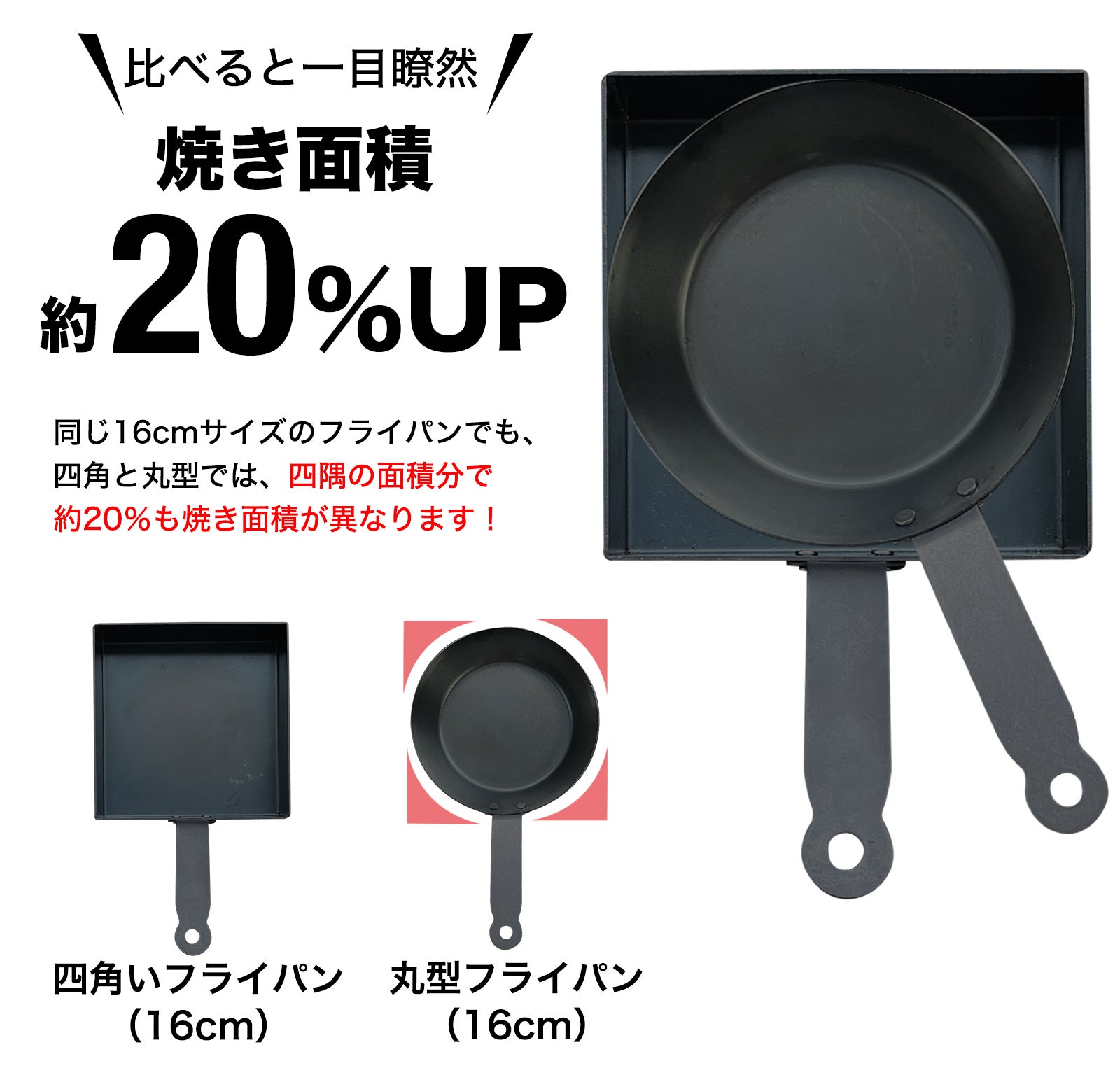 従来品の丸型に比べて「焼き面積」が大幅アップ!