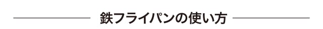鉄フライパンは、使い込んでいくうちに自然に油がなじんで、焦げ付きなどが少なくなっていきます。鉄フライパンを使用するときは十分に温めてから、油を引いてご使用ください。