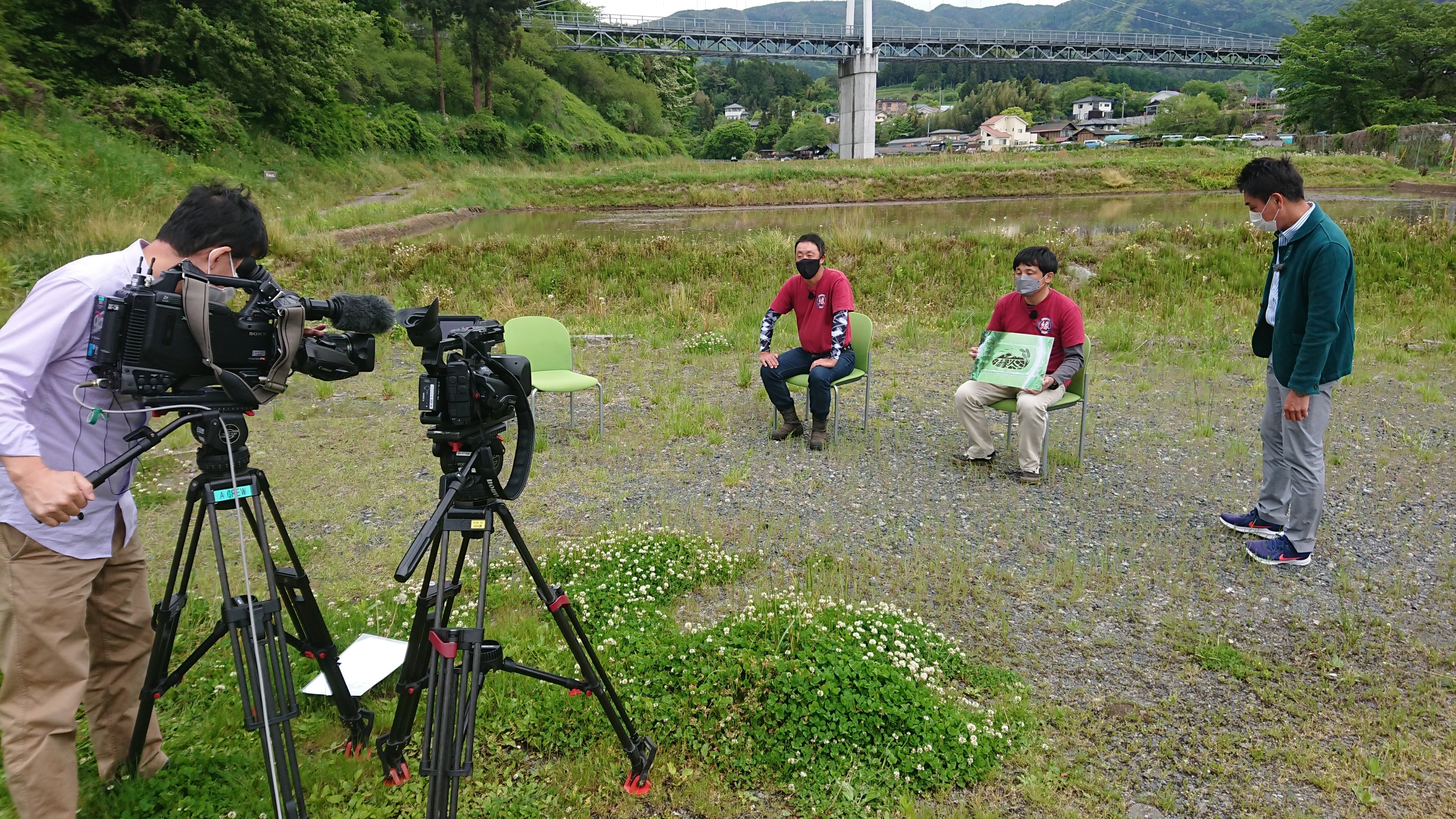 5月24日(火)NHK総合「ほっとぐんま630」が午後6時30分から放送されます。「インタビューぐんまびと」で川場村田んぼアート保存会会長・宮田康明くんと相談役・小林仁志くんが出演します。(写真は収録時のもの)クラファン支援者への思い、田んぼアートへの思いが語られます。ぜひ、ご覧ください!!(放送エリアが群馬県内につき、すみません・・・。)