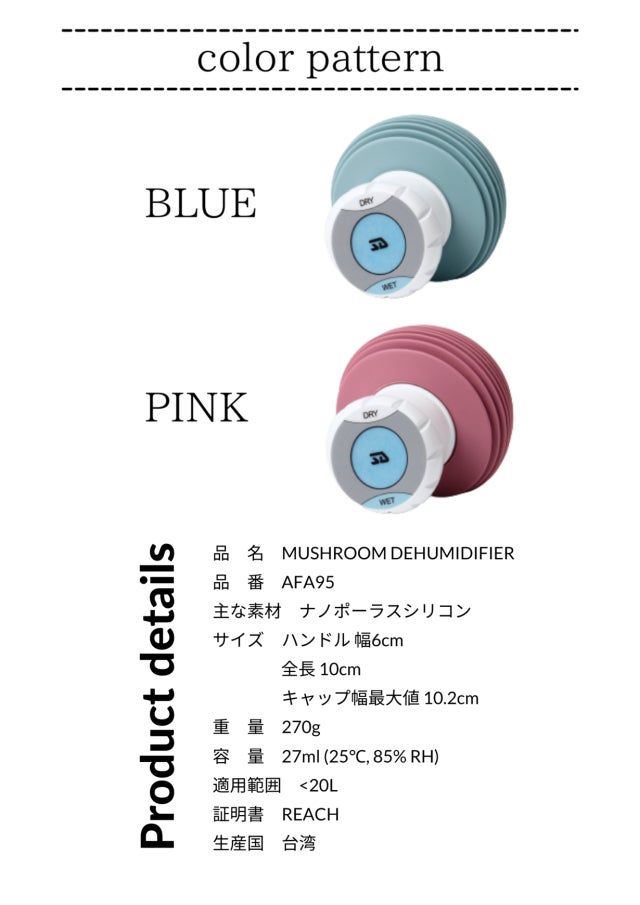 この【MUSHROOM】は日本以上に湿度の問題が深刻な台湾で研究され、開発されました。 日本・韓国・アメリカで特許取得のオンリーワン商品です。