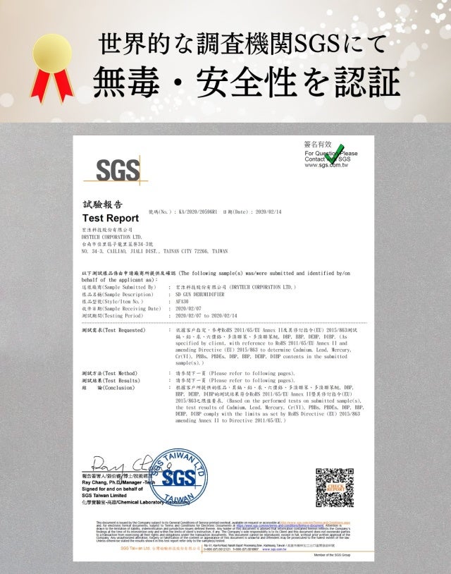 EUの安全基準であるRoHS(特定有害物質の使用制限)認証や、REACH(化学物質の登録・評価・認可・制限規則)認証、さらにカリフォルニア州プロポジション65※(1986年安全飲料水および有害物質施行法)認証も受けているので無毒で安全性の高い製品です。