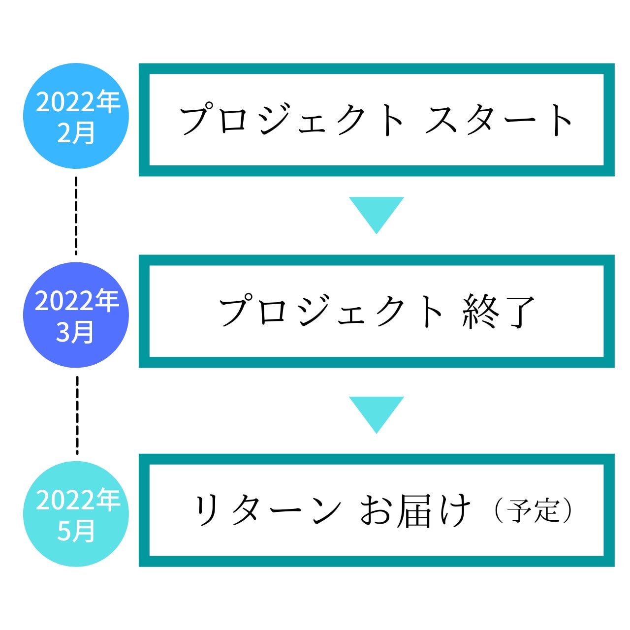 ※本文中に記載させていただいたスケジュールは、あくまでプロジェクト公開時点の予定です。クラウドファンディングの性質上、配送遅延のおそれがございます。
