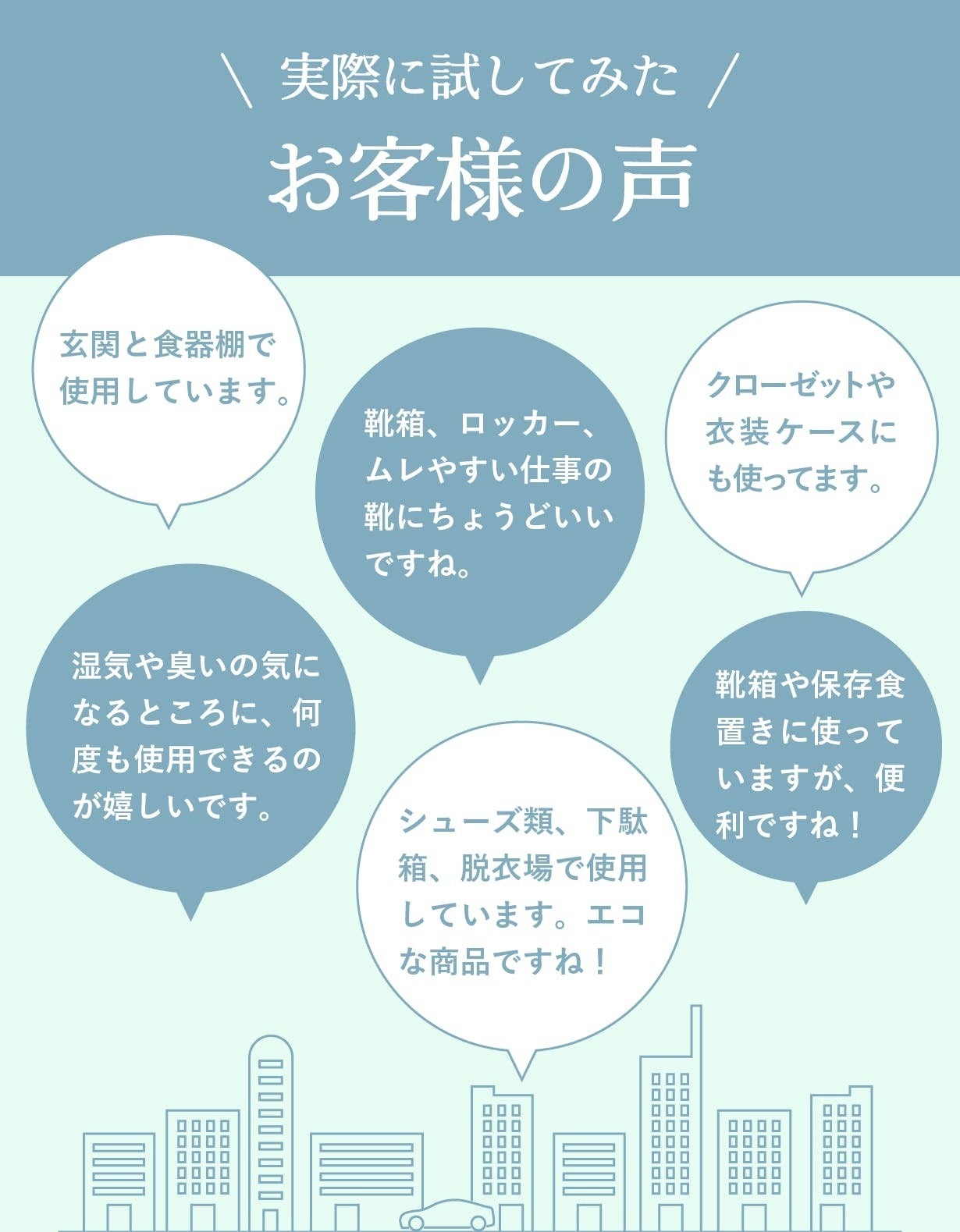 買い替えの必要がなく、除湿したい品に入れてしっかり強力除湿が出来ます。