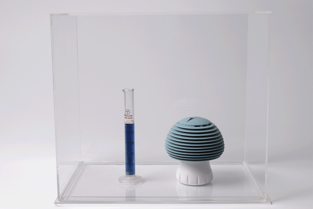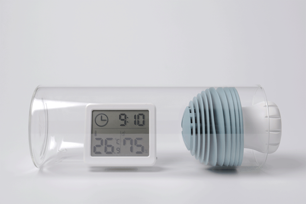 メーカーの調べでは、室温30°、湿度85%、10Lの空間での環境で【MUSHROOM】を置いたところ、7日間のうちに29.6%まで湿度を下げました。
