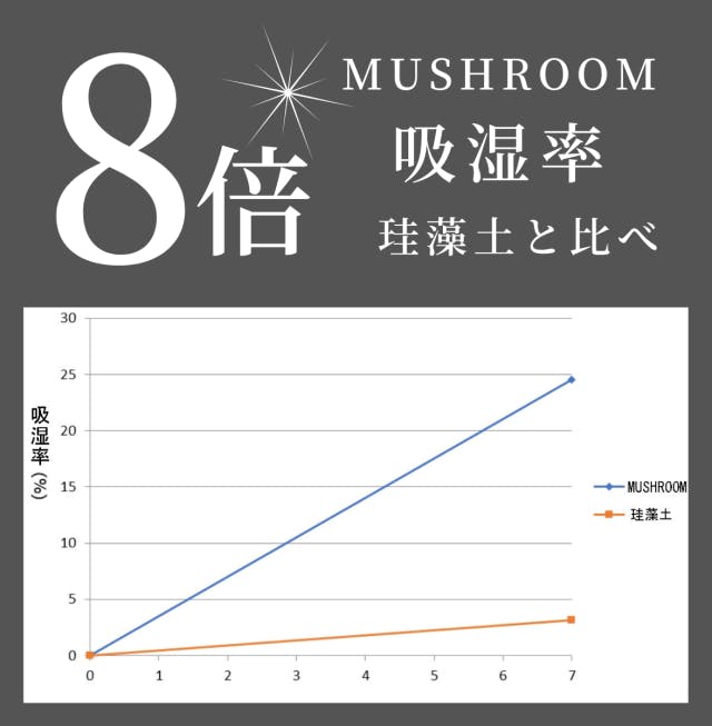 【MUSHROOM】は湿気と臭いを同時に強力に吸収していることがわかります。
