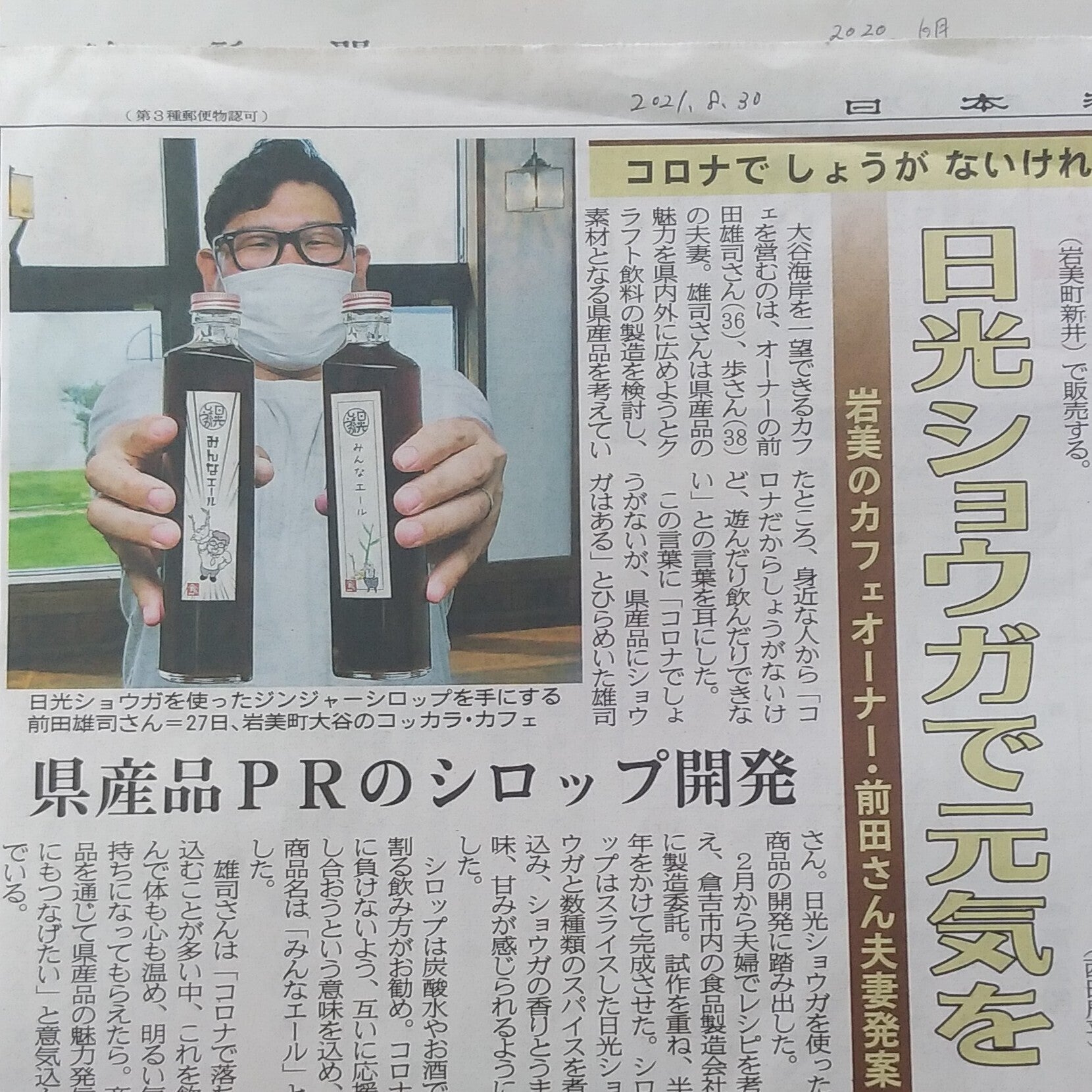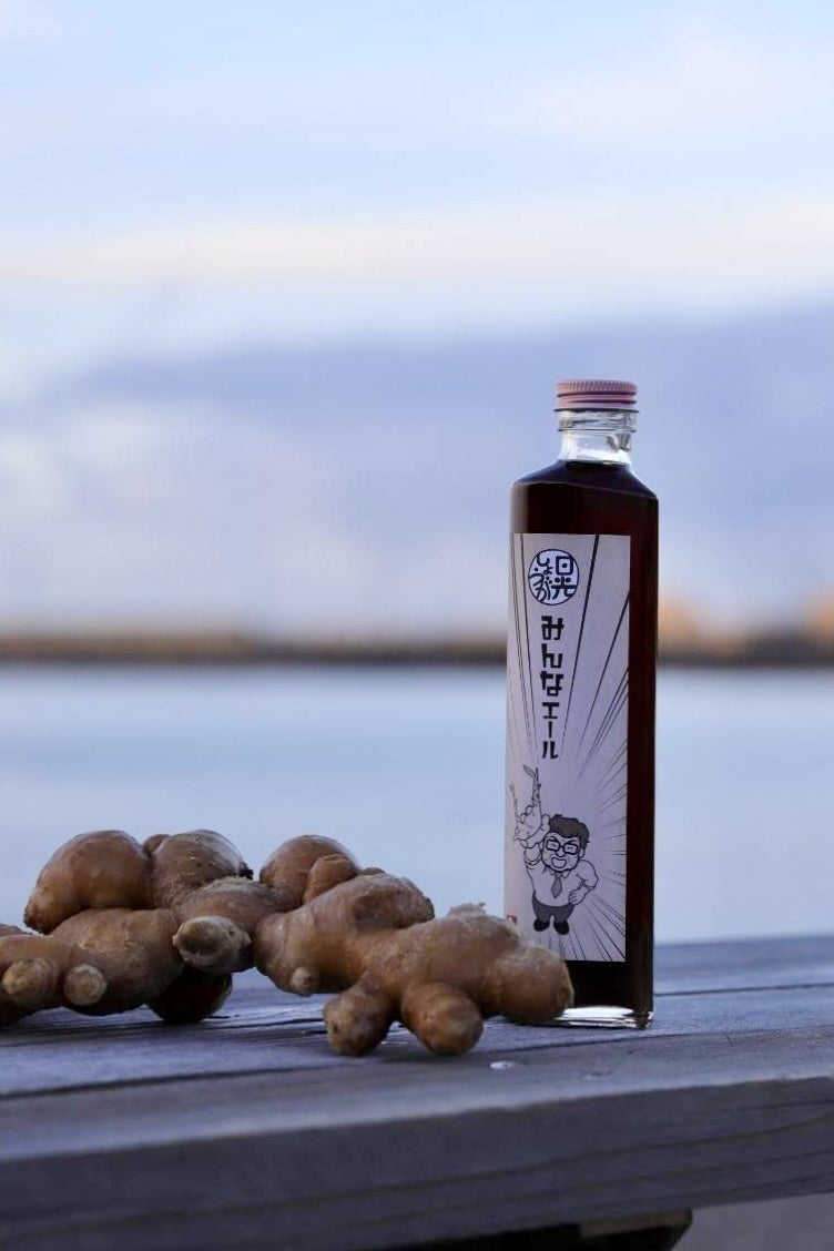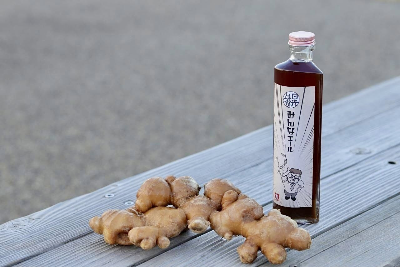 と思いつき、鳥取の名産の【 日光生姜 】を使ったクラフトジンジャーシロップを開発。免疫力を高めて苦難な状況を乗り越えてもらいたいという想いから 《みんなエール》 と名付けて販売しています。