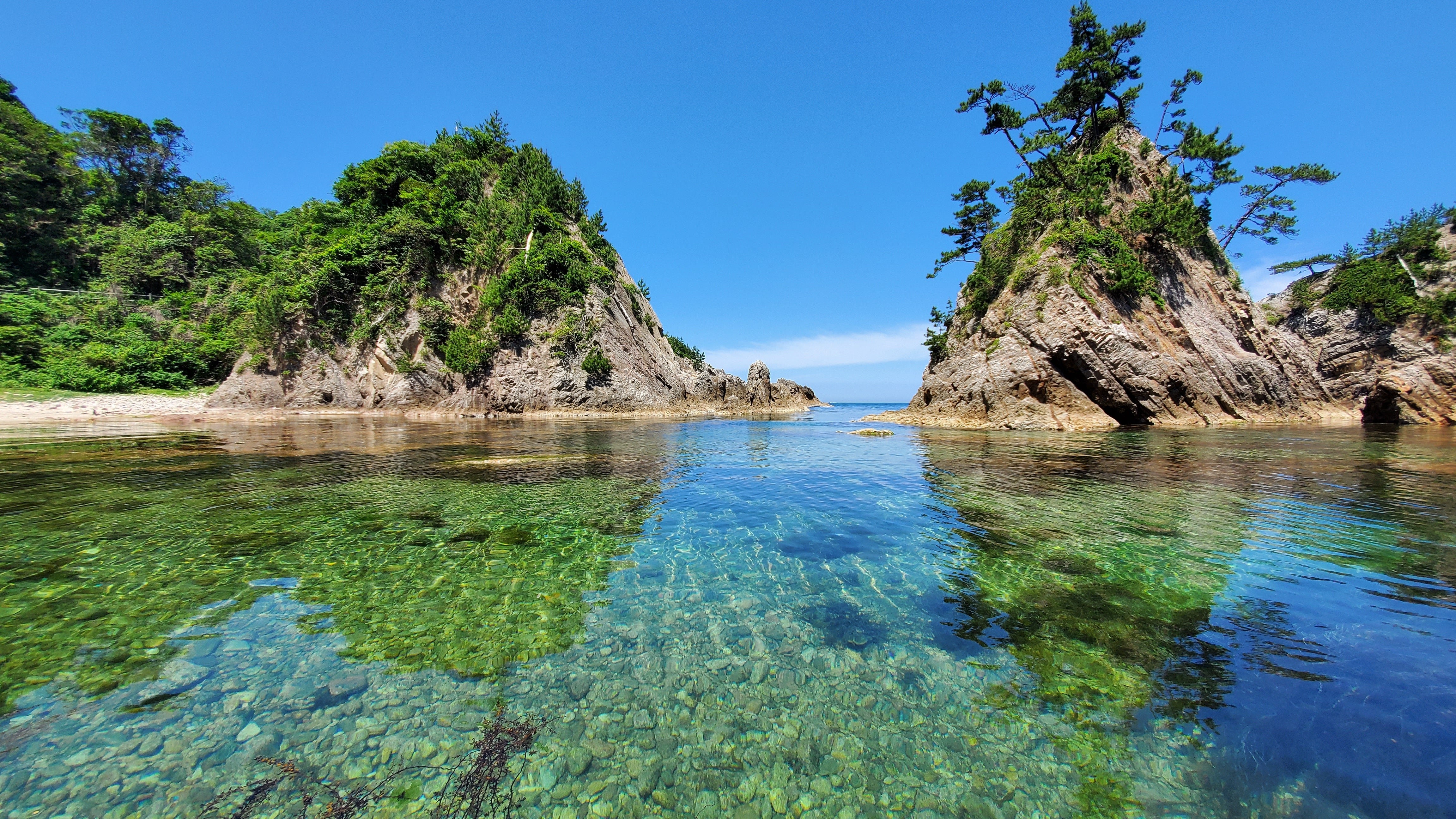 世界ジオパークにも認定されている岩美町の海は、碧い海・白砂の浜・離れ岩など、美しい名勝地として知られており、岩美を代表的する浦富海岸は、沖縄の海の透明度と比較しても引けをとらないレベルだと言われています。