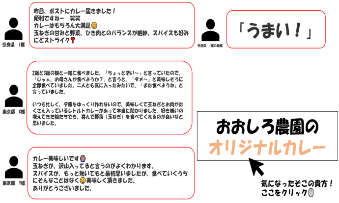 私達の農作物や商品、今回のレトルトカレーが皆様の優しく穏やかな食事時間を過ごす1品となってくれたら幸いです。
