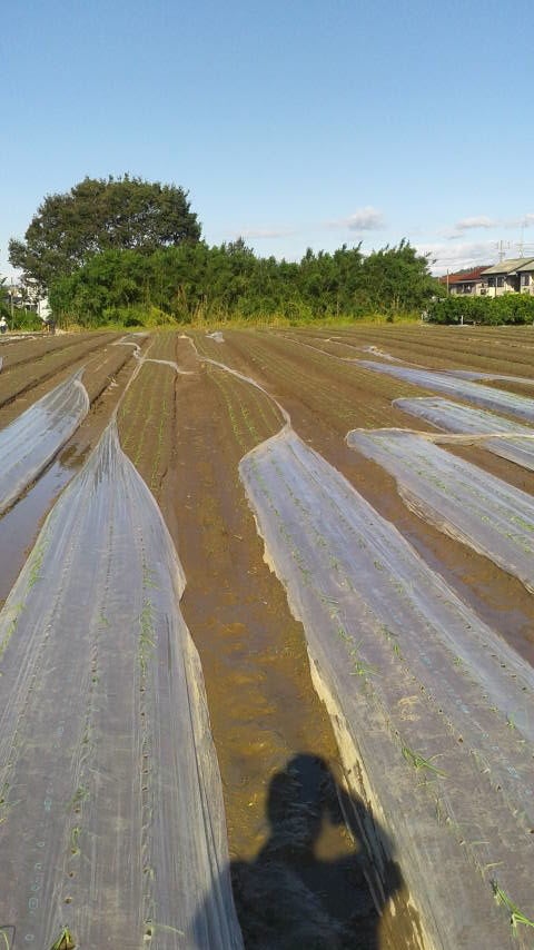 下の写真は、2018年の10月の台風で玉ねぎを定植した畑のマルチビニールがめくれてしまった写真です。