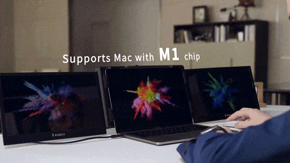「KWUMSY P2 PRO」はドライバーソフトを使用して、ほぼすべてのノートパソコンに2つの画面を追加することが可能です。もちろん、M1チップ搭載Macの3画面表示にも対応できます!