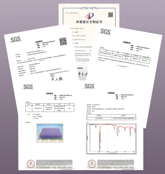 材料の安全性と品質の保証として、中国のデザイン特許を取得しています。