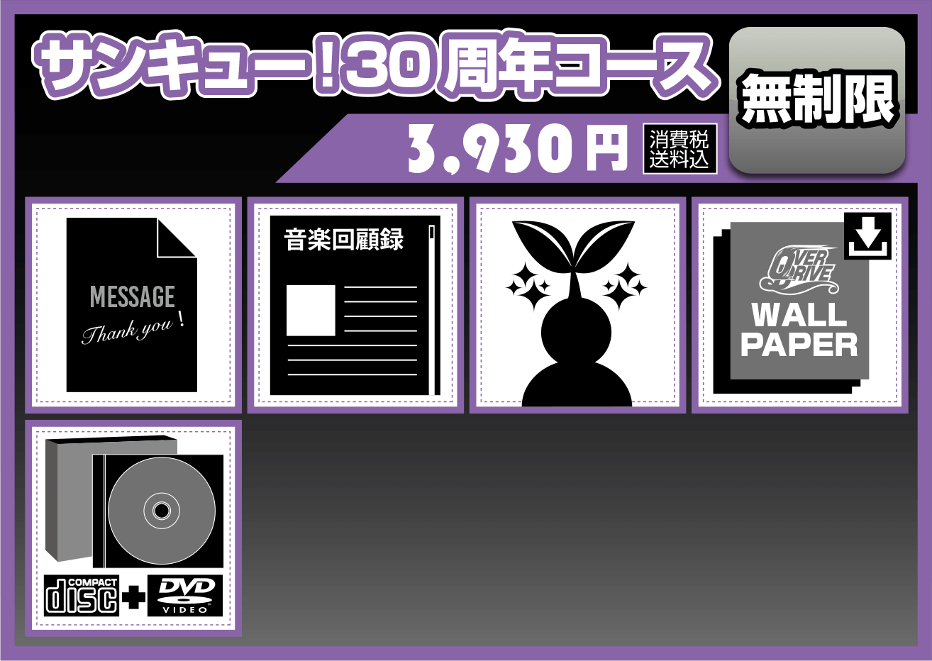 ※1,100円コースの支援の一部は3月30日・31日に配信されるOVERDRIVE LAST GIG on Web「Thank you for Playing」の開催支援に使わせて頂きます。