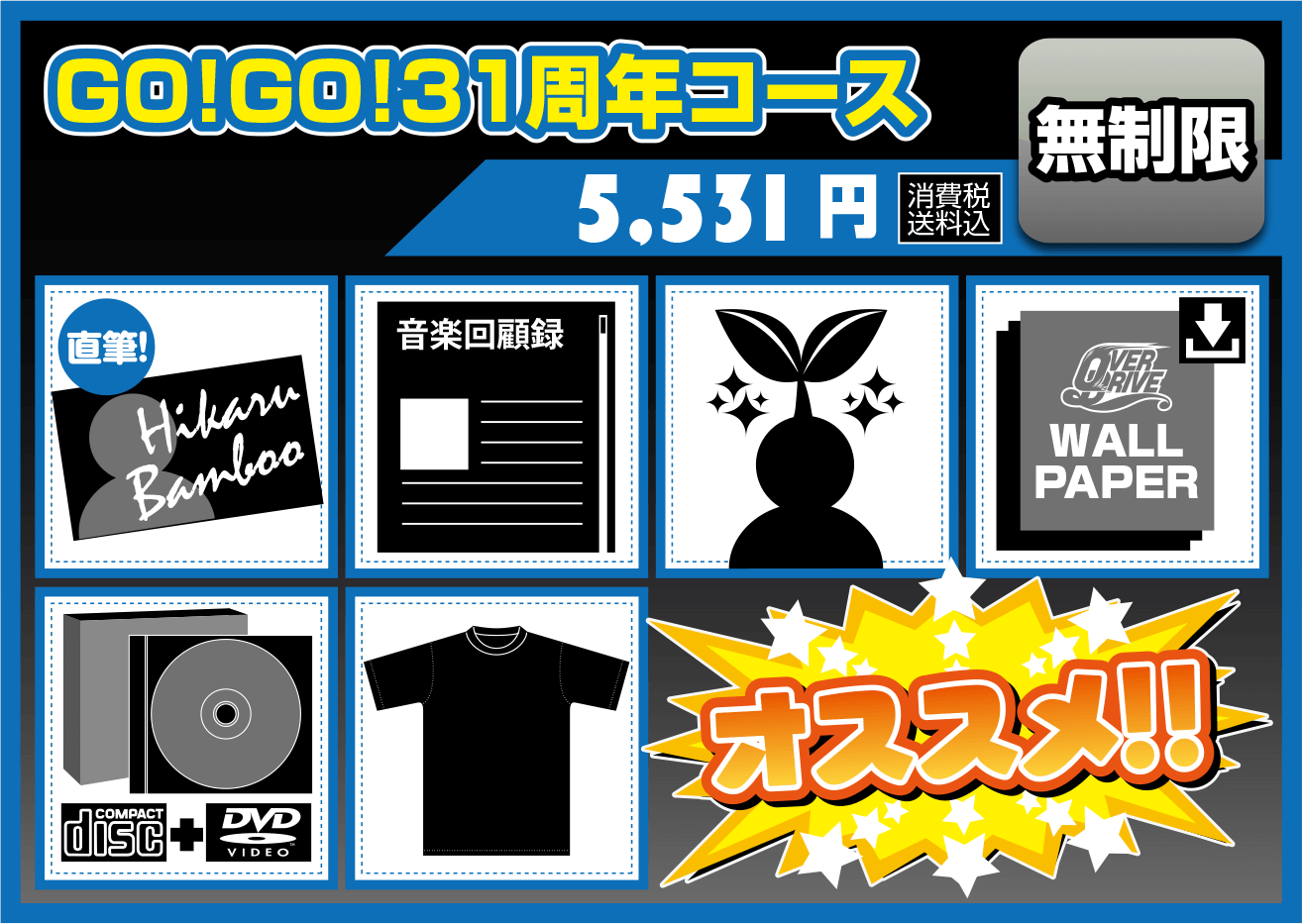 ※3月31日までにご支援頂いた1,100円コースの支援の一部は3月30日31日に配信されるOVERDRIVE LAST GIG on Web「Thank you for Playing」の開催支援に使わせて頂きます。あらかじめご了承ください。