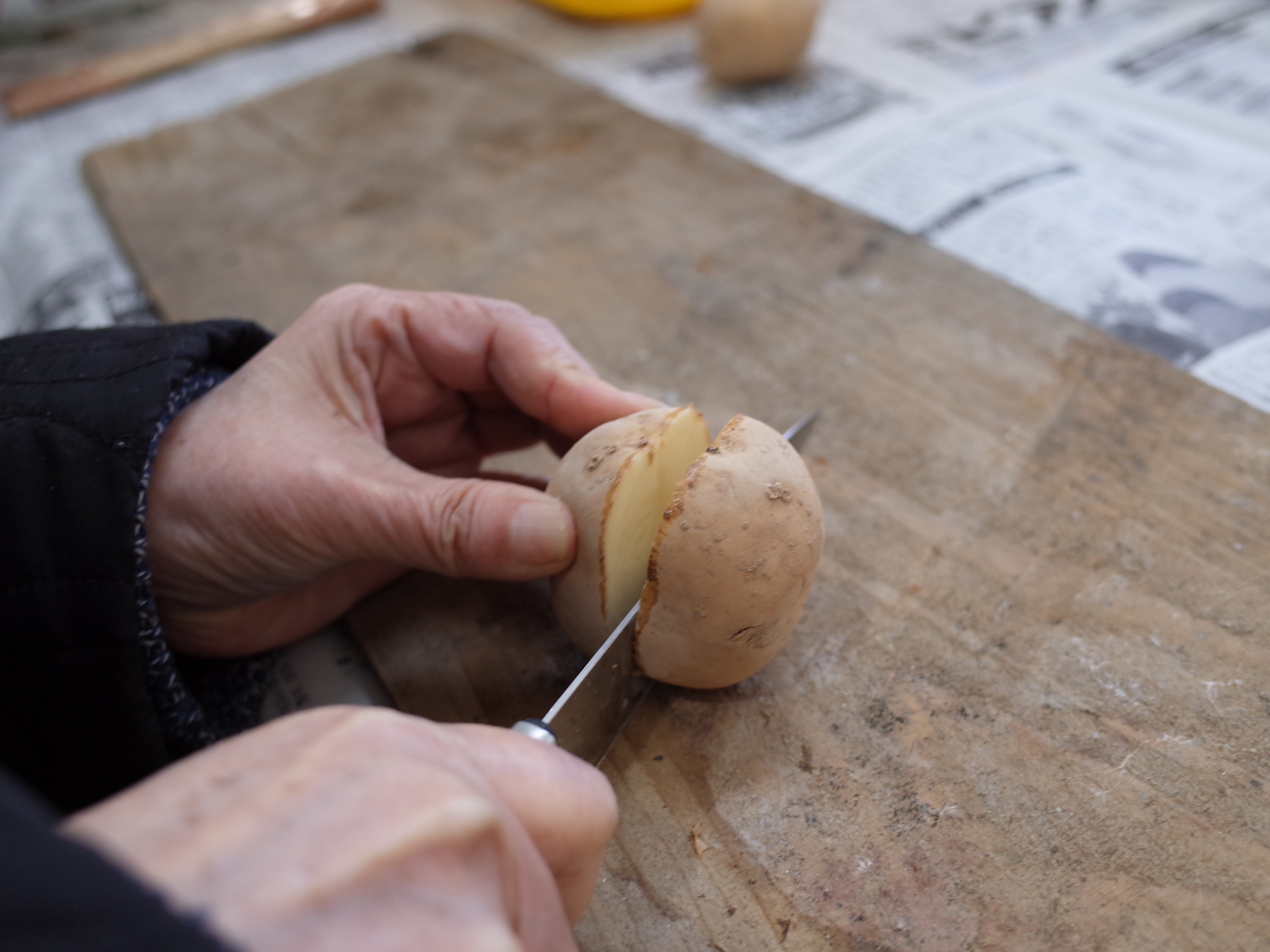 「じゃがいもの種芋カットが好き。給食のおばさんになった気分。自宅で使い慣れた包丁で種芋カットしたいけどなぁ」