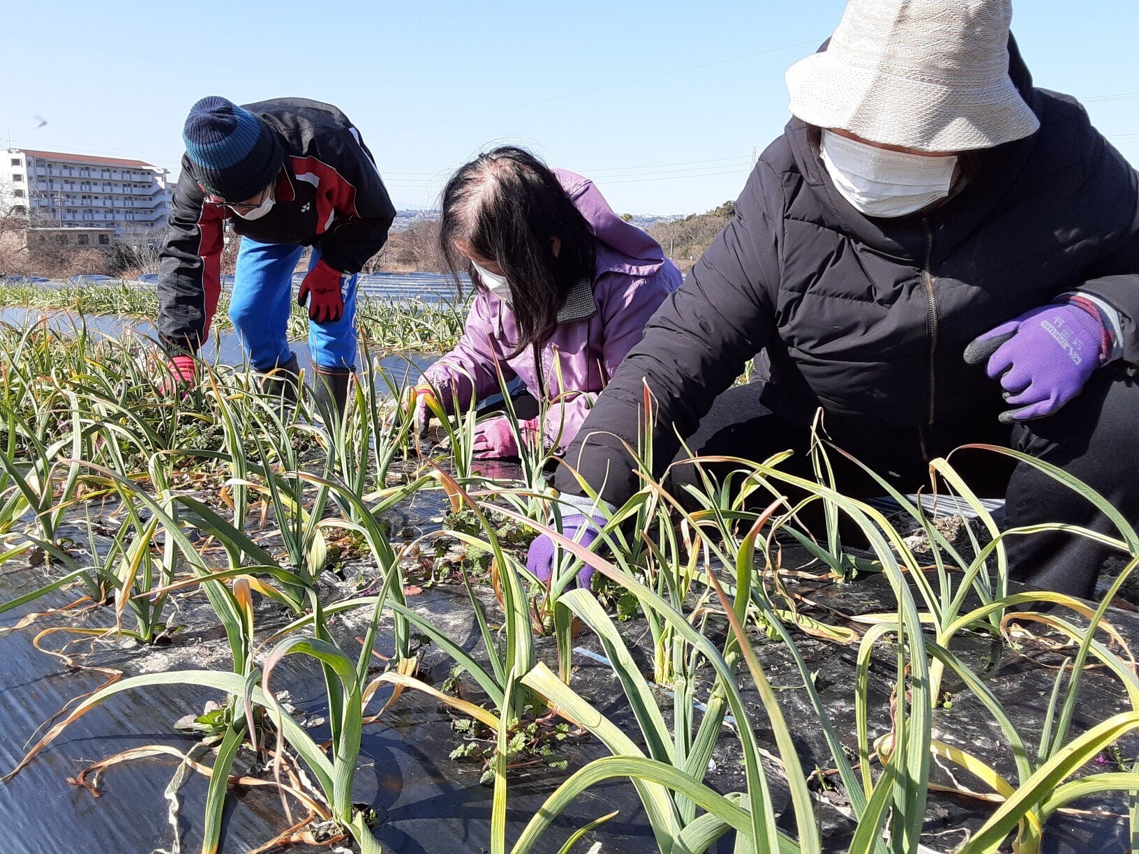 畦道では、植え付け、収穫、畑の草取り、出荷前の検品等、様々なお仕事をさせていただいています。