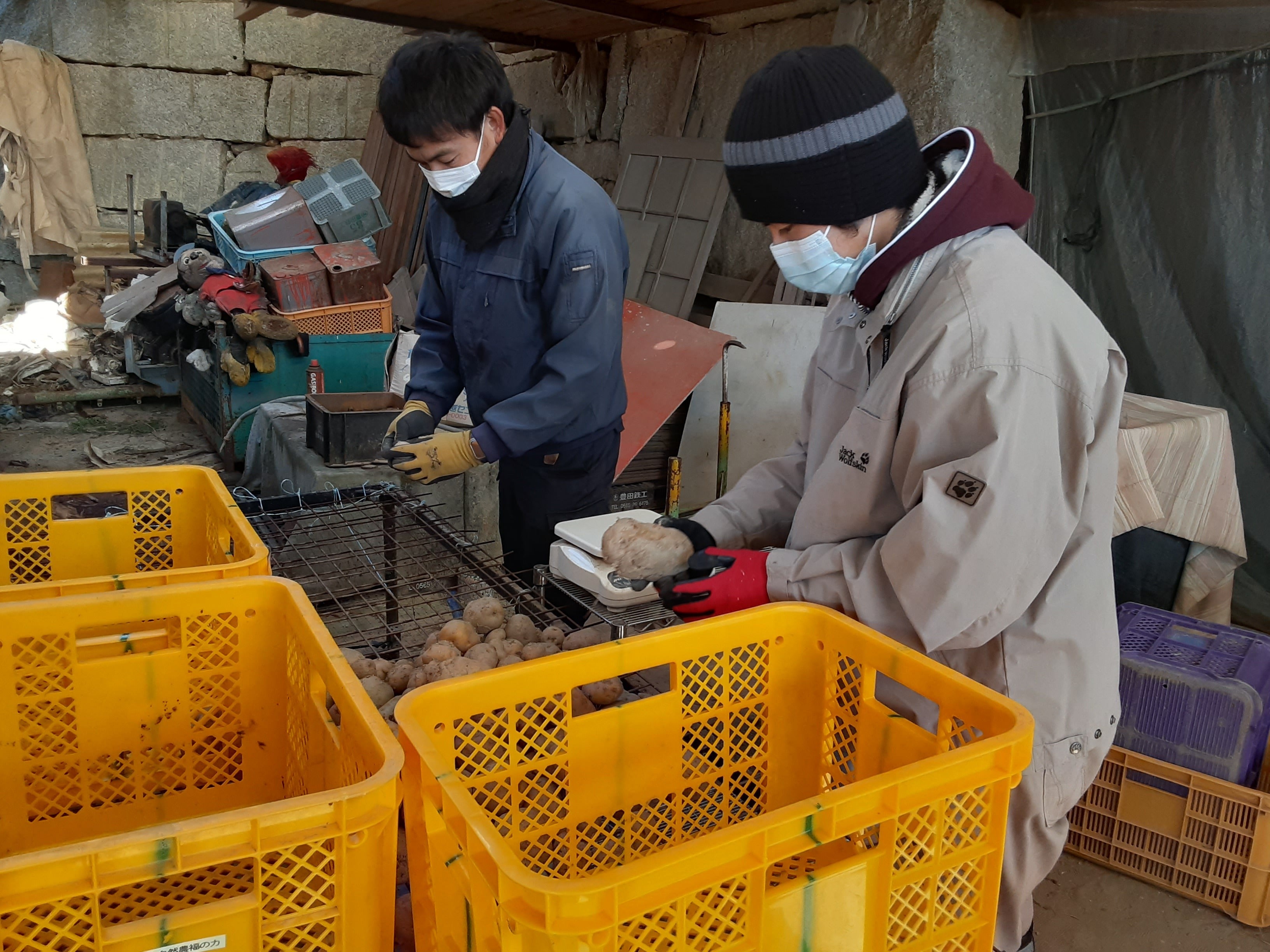 今枝さんは2haの畑で、じゃがいも、にんにく、玉ねぎ、かぼちゃ、さつまいも、白菜、キャベツ、サニーレタス、ブロッコリー、大根、キウイフルーツ等を育てています。畑は高齢化等で農業を続けられなくなった地域の方から、借りられているそうです。