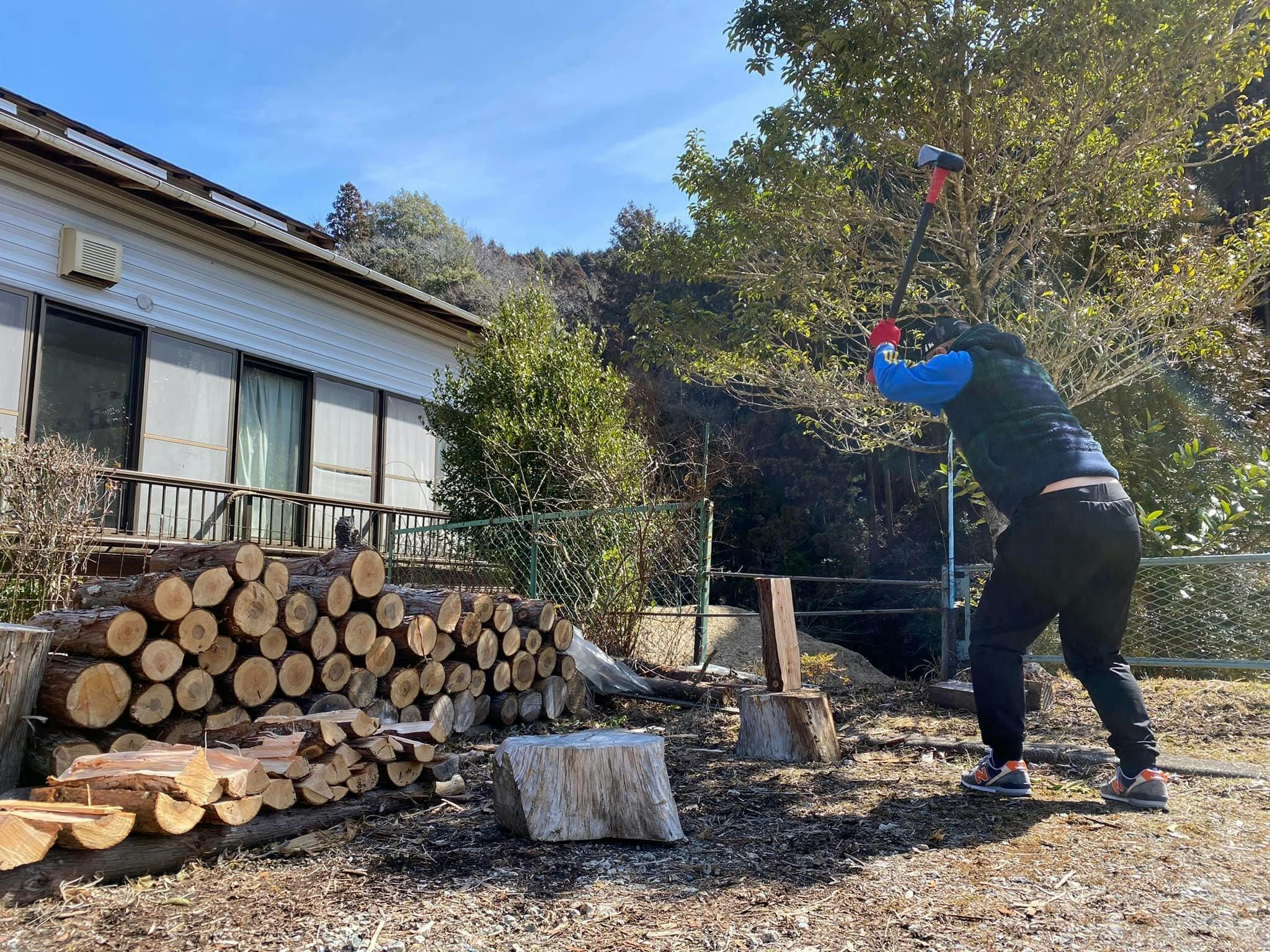 薪割りの量にノルマはなく、山に囲まれた場所で鳥のさえずりを聴きながら薪割りをおこなう時間は、仕事なのにのんびりした気分になります。