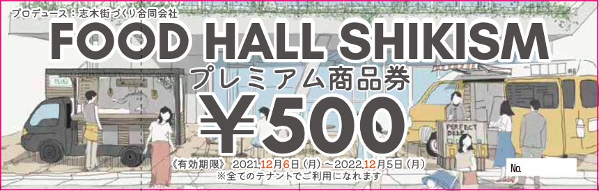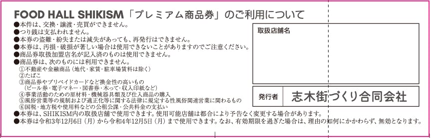 フードホール内で使えるプレミアム商品券となります。