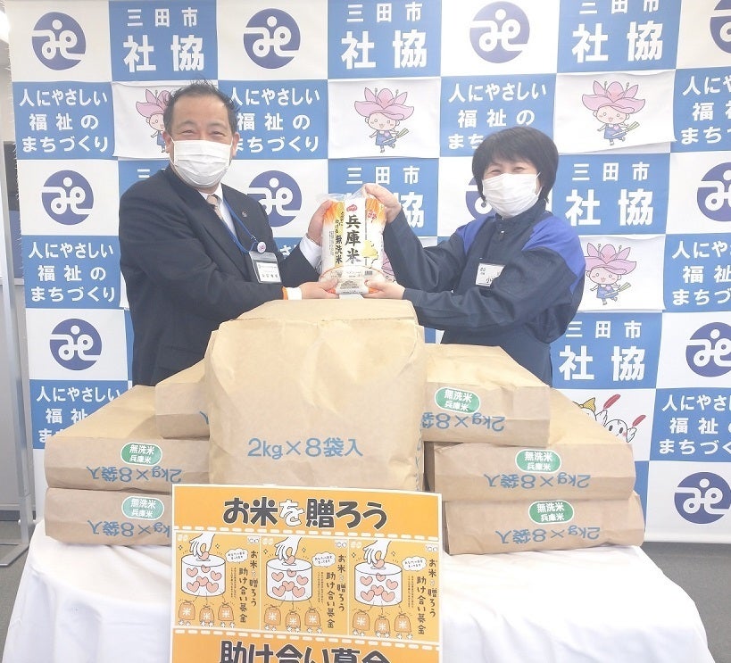 生活協同組合コープこうべ第4地区本部様より、『さっちゃんサンタプロジェクト2021』にと、お米160㎏を寄付していただきました。生活協同組合コープこうべ第4地区本部様には昨年度に引き続いてご協力いただいており、今回は組合員の皆様を中心に呼びかけられた「お米を贈ろう助け合い募金」をもとに寄付をいただきました。