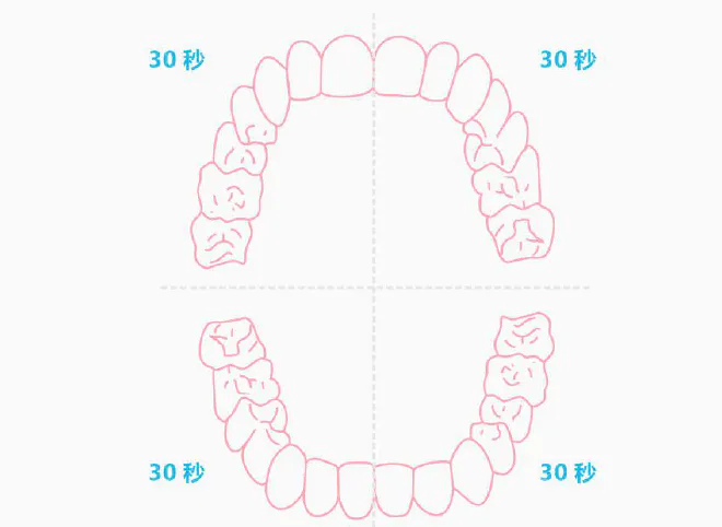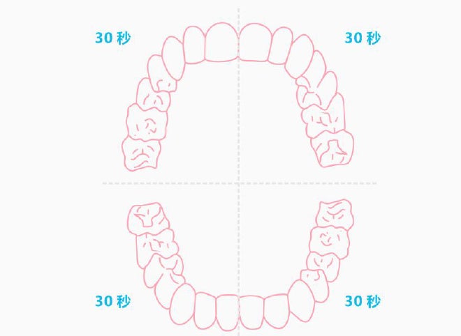 2分間、しっかりと磨けるように、口腔内を4つに分けて30秒ごとにバイブレーターが作動して次のエリアを磨くようにお知らせしてくれます。
