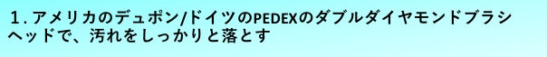 1. アメリカのデュポン/ドイツのPEDEXのダブルダイヤモンドブラシヘッドで、汚れをしっかりと落とす